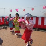 花笠音頭を介護部の阿部里美さんと大澤さん看護部の横川さん、