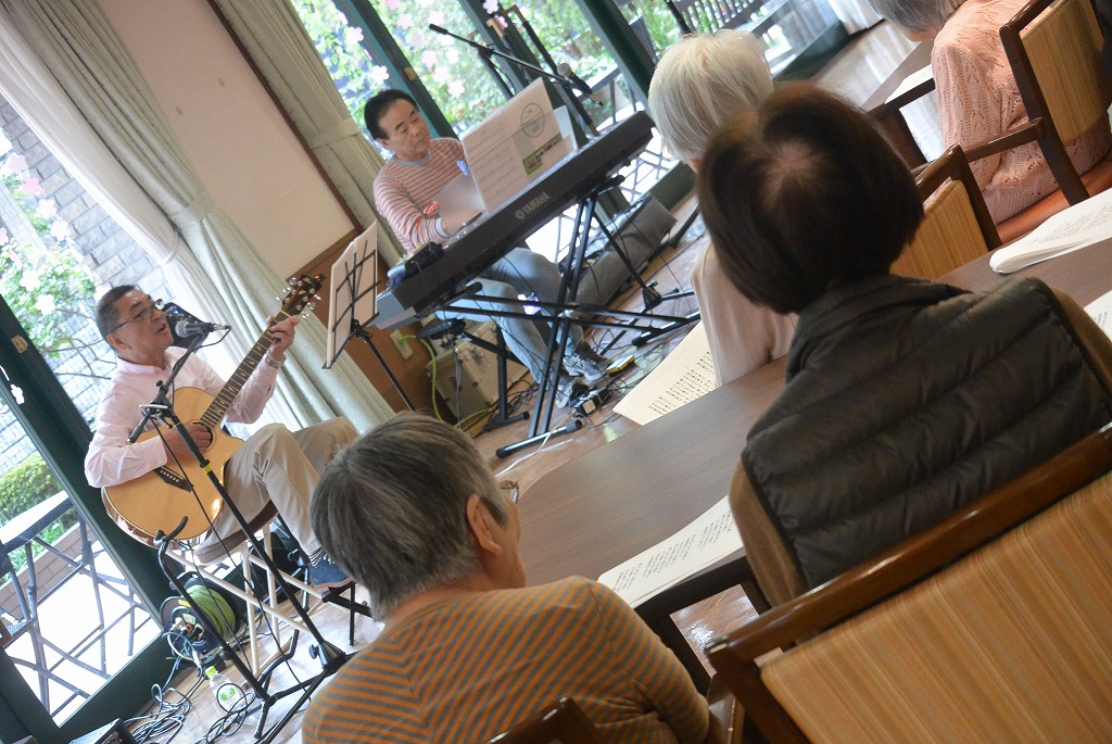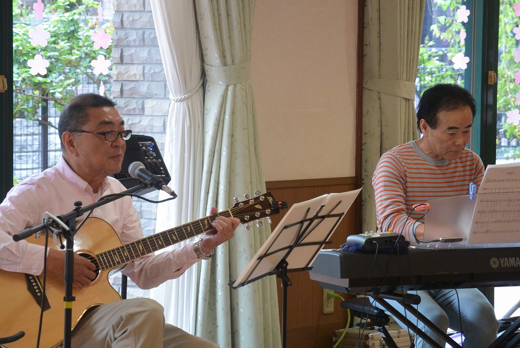 ご入居者も一緒に歌い、1階ホールに素敵な時間が流れました(*^_^*)