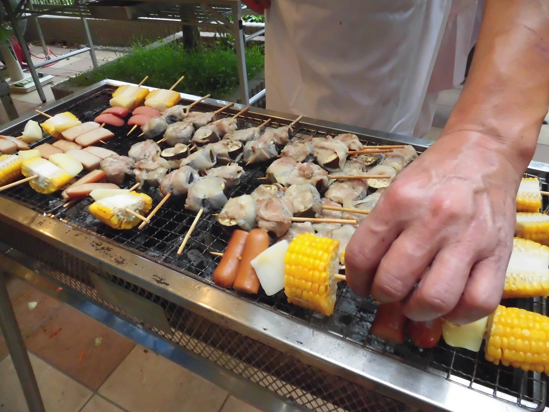 お食事は、焼きそば・焼き鳥・肉巻きの串焼き・冷汁・たこ焼き・