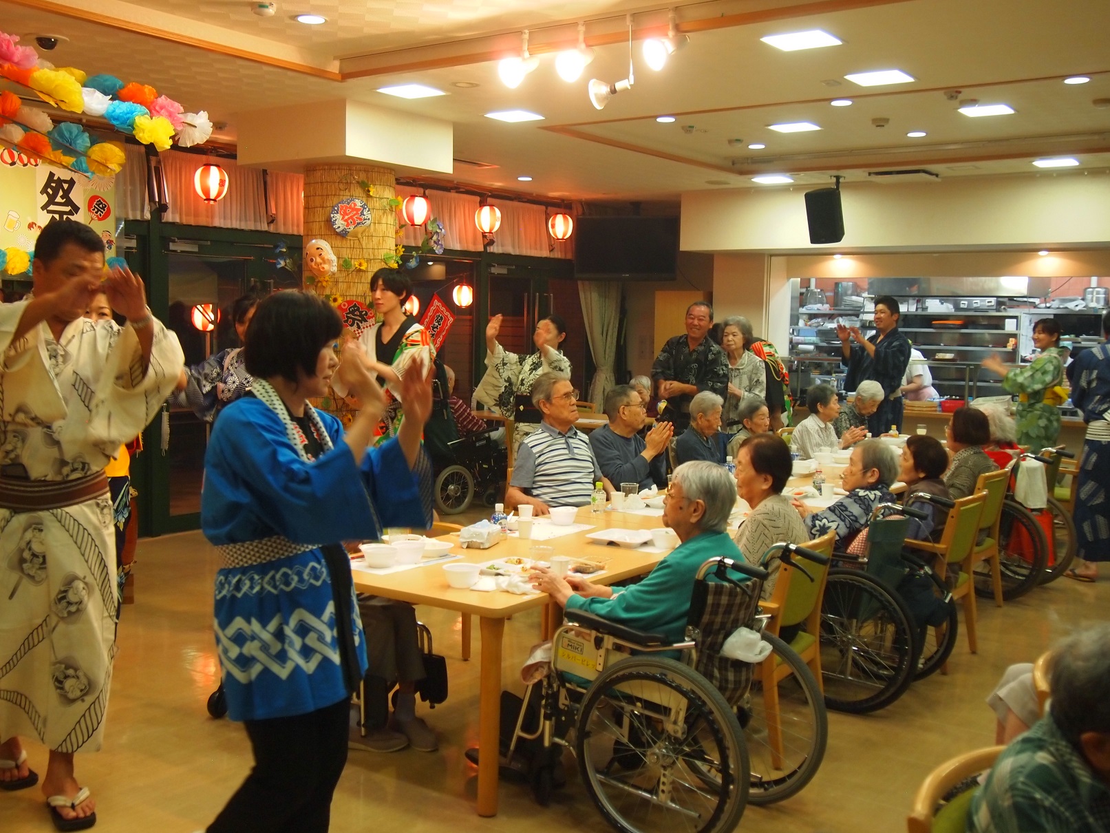 その後はご入居者の出し物で「河内男節」に合わせて踊りを踊って頂きました。