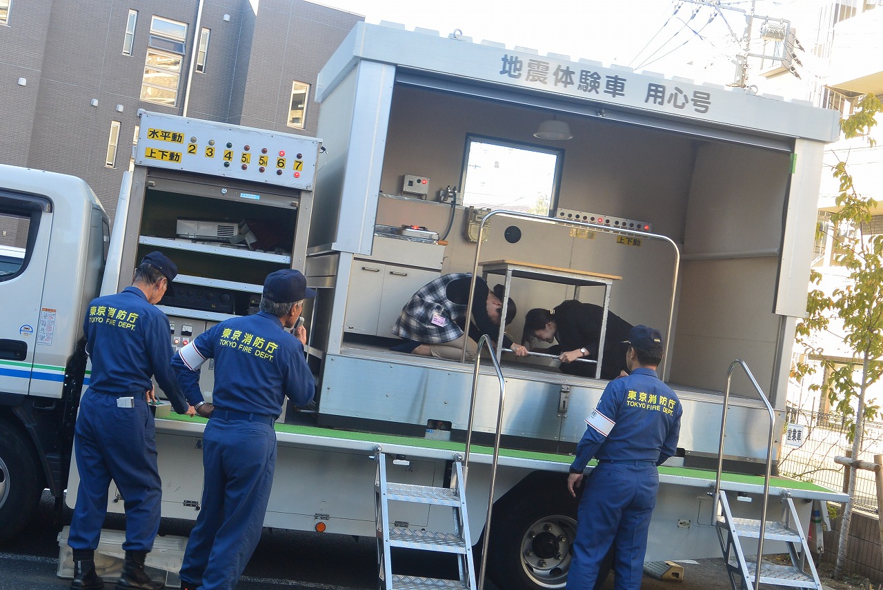 その後は、消火訓練と震度7の地震を体験車にて体験しました!!