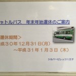 今年も年末年始、4日間運休となりますので、ご案内いたします。