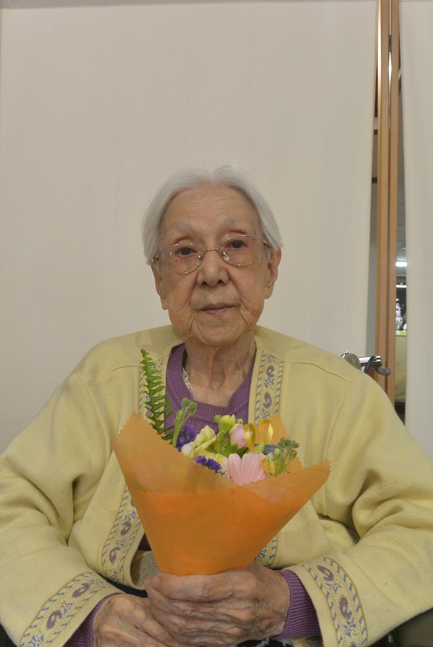 ミニブーケと、ピアノの伴奏に合わせて誕生日の歌を歌いました☆