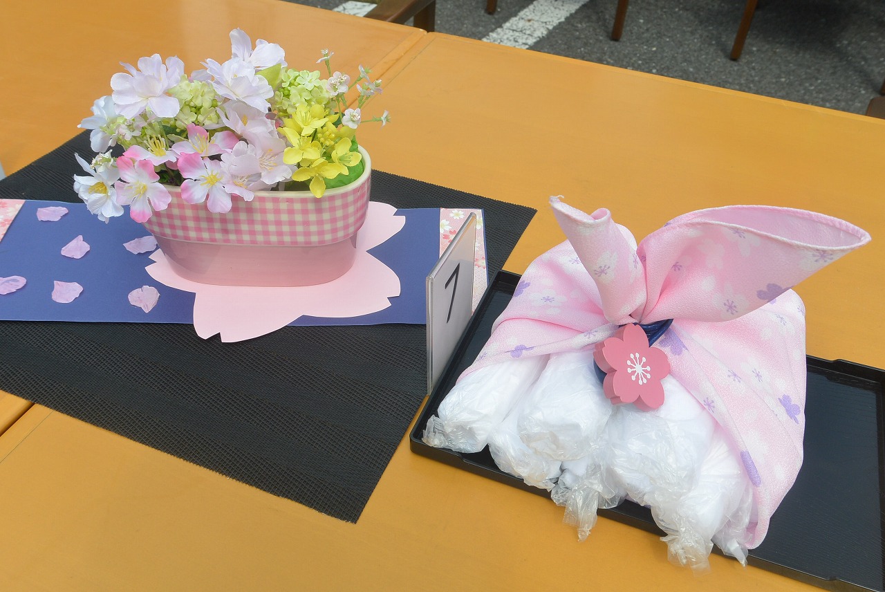 ランチョンマットやおしぼりにも工夫を凝らし桜をあしらいました!