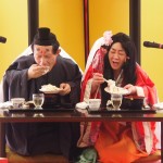 二人羽織は姫が私、渡邊。後ろが森園係長。お殿様が、前が遊びりテーション課、佐久間さん、後ろが大橋課長。