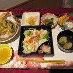 昼食には、バラ散し寿司や天ぷらを召し上がって頂きました。