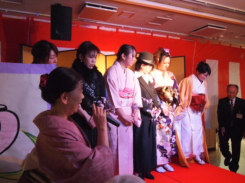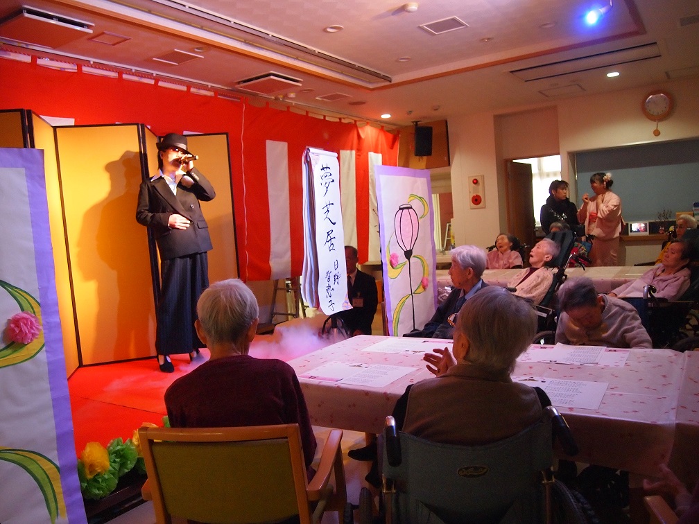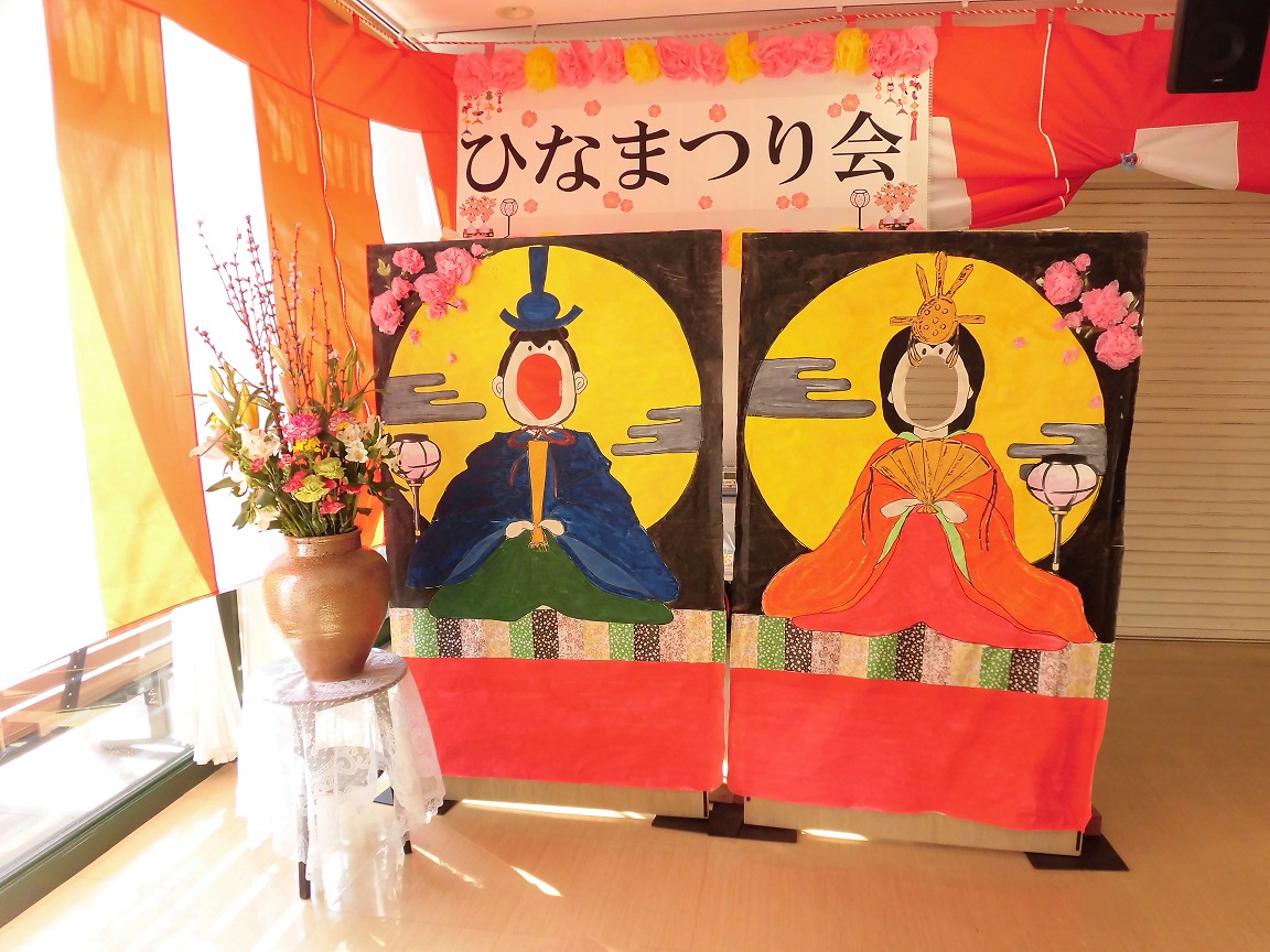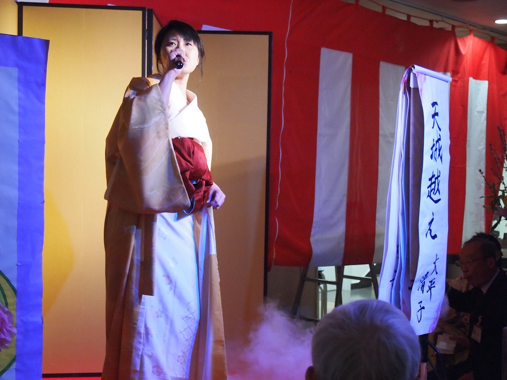 まず初めに『うれしいひな祭り』を皆様で合唱して頂き、雰囲気の出た所で、女性職員による「艶歌の花道」を披露して頂きました!