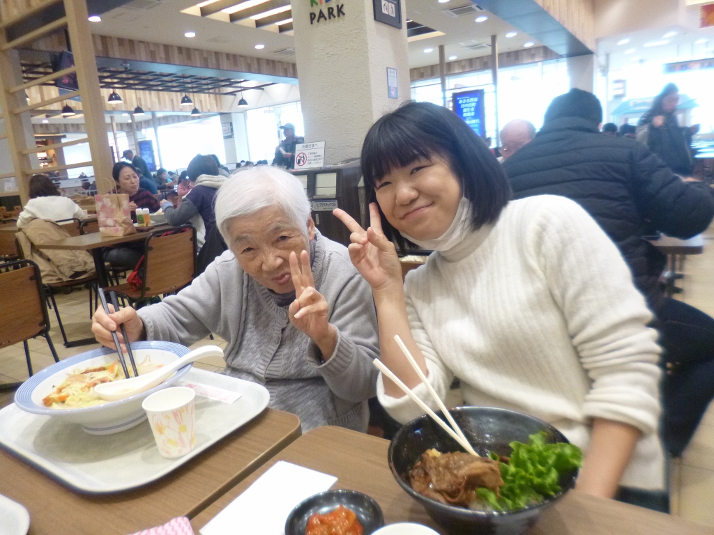 日の出イオンモールのフードコートにて