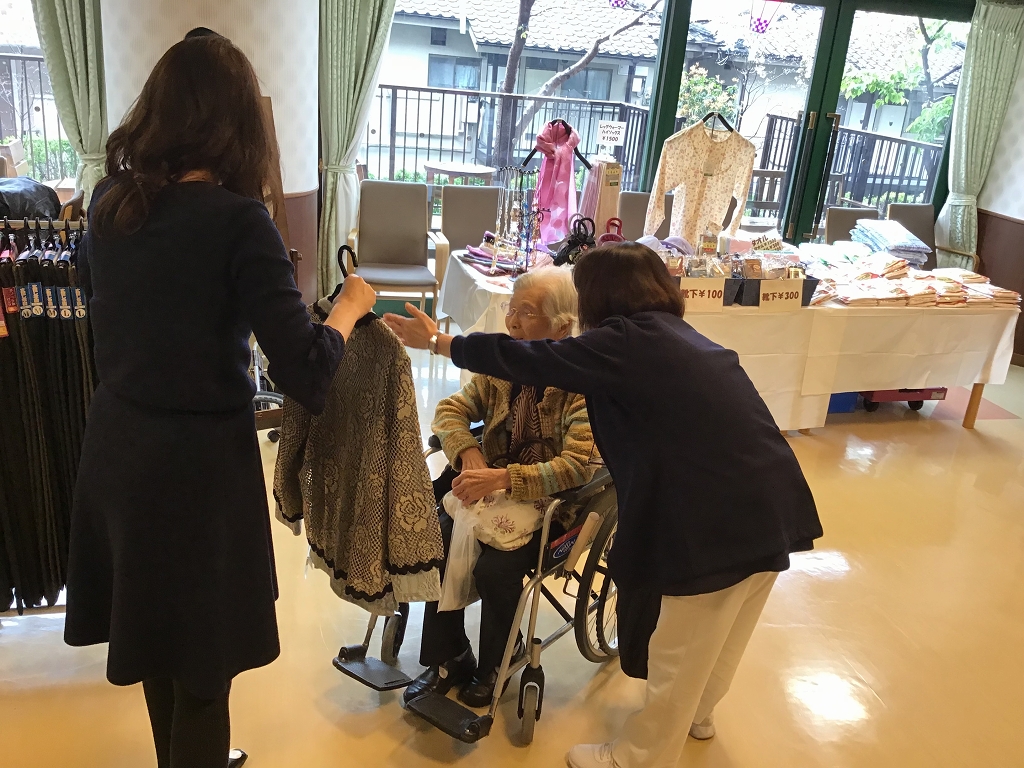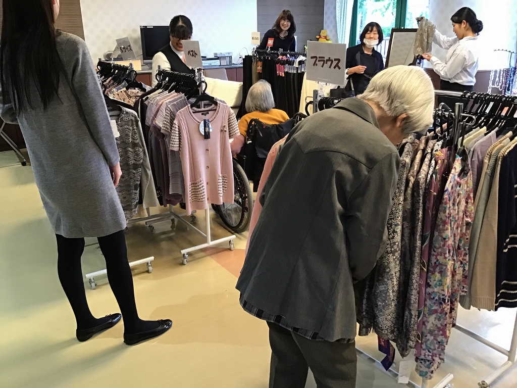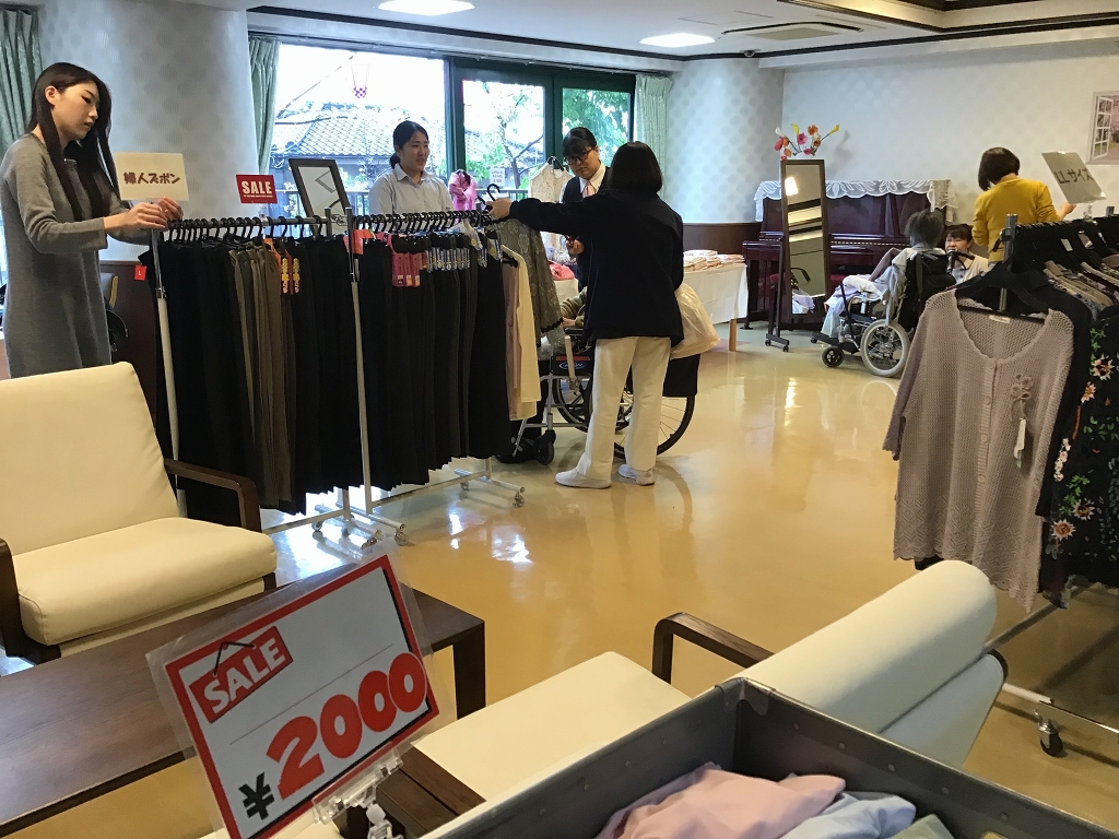 衣料販売が行われました。ベスト、カットソー、婦人用のズボンなど