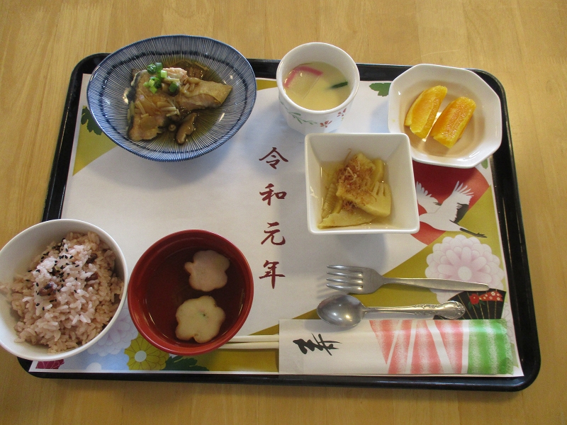 年号が変わったことをお祝いして、ご入居者の皆様に昼食にお赤飯を召し上がって頂きました。