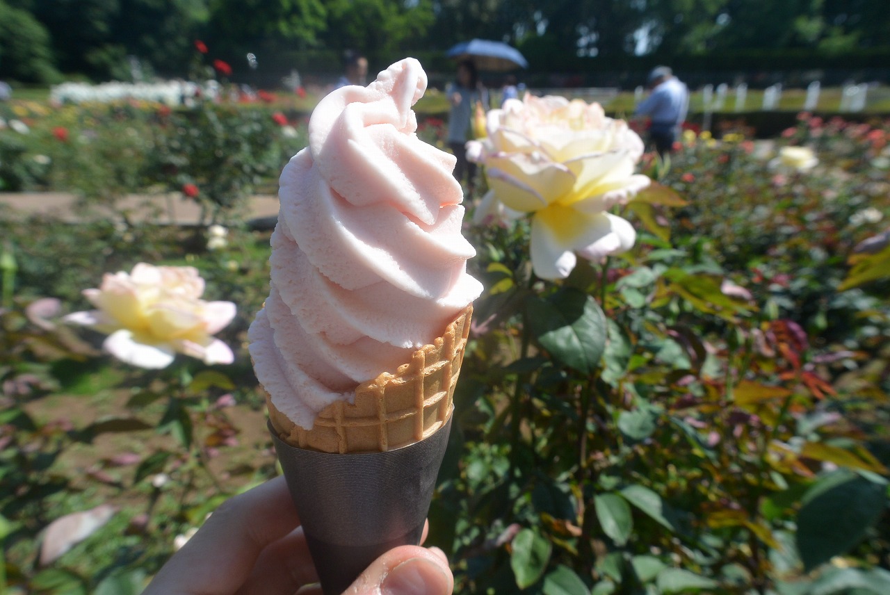 最後にバラ色のソフトクリームを召し上がって頂きました。