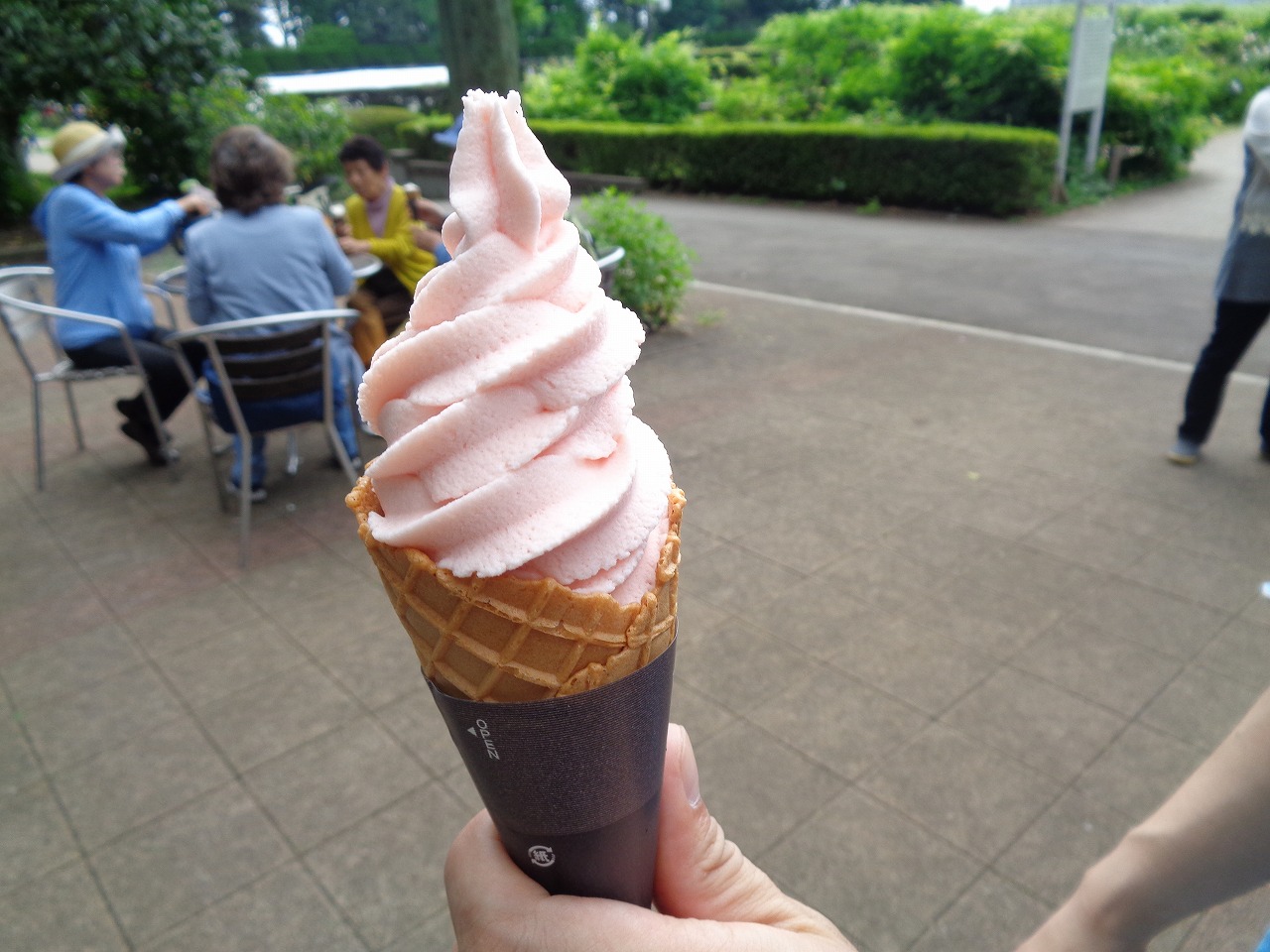 バラの香りに包まれながらバラのソフトクリームを召し上がって頂きました。