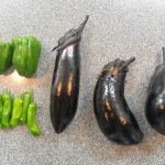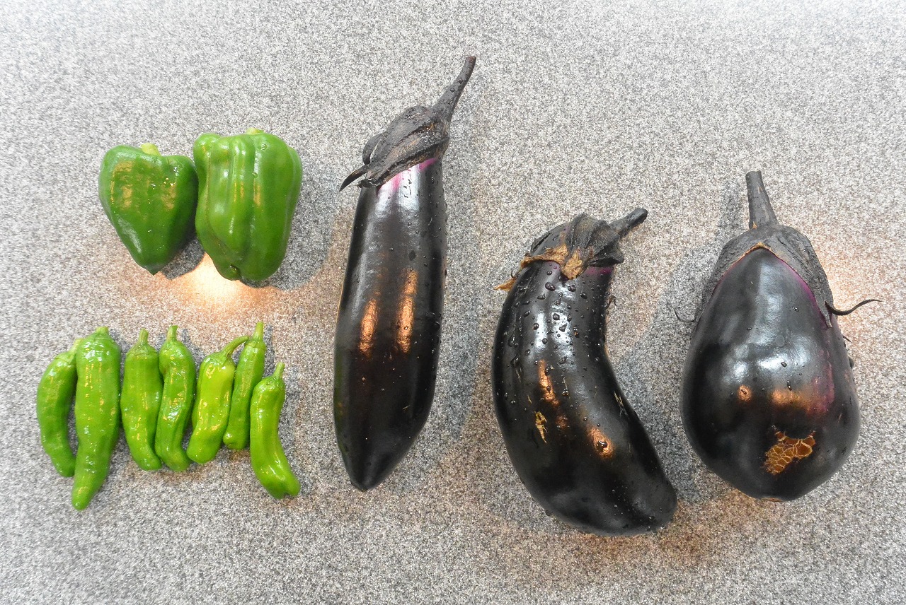 昨日はナス(3つすべて種類が異なるのです!)とししとう、ピーマンが
