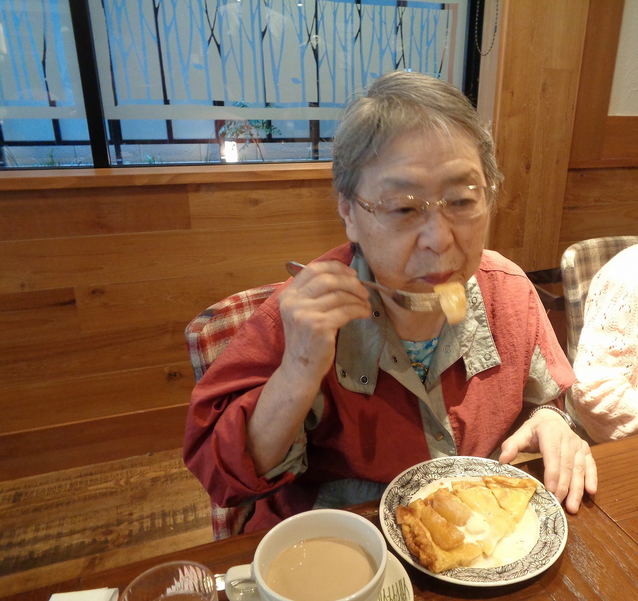 名物のあずさミルク珈琲と、オリジナルパンケーキを召し上がっていただきました。