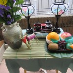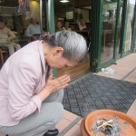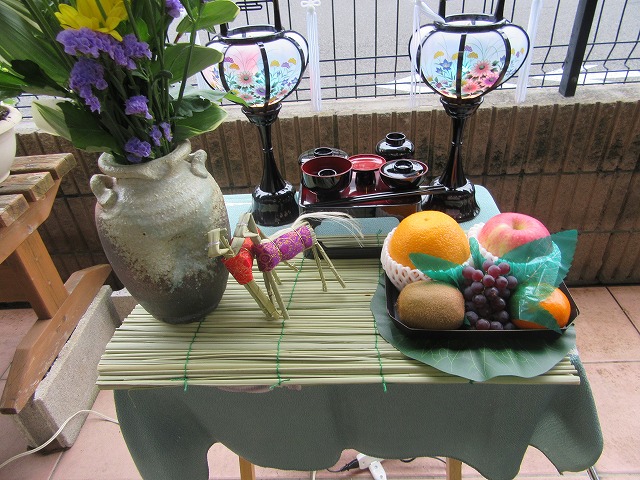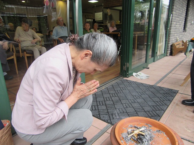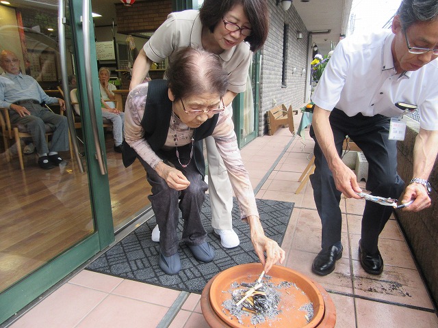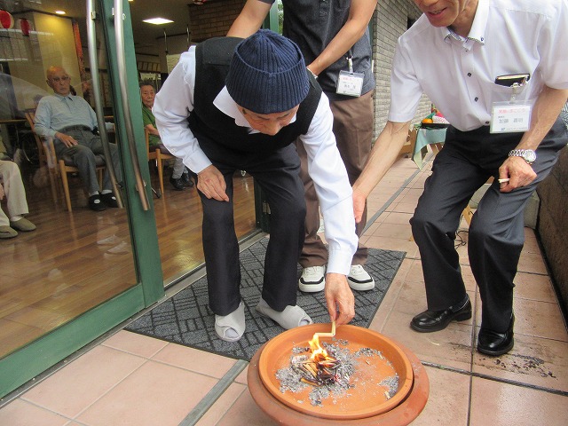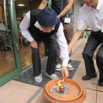 素焼きの平皿におがらを乗せ、燃やしていただき、