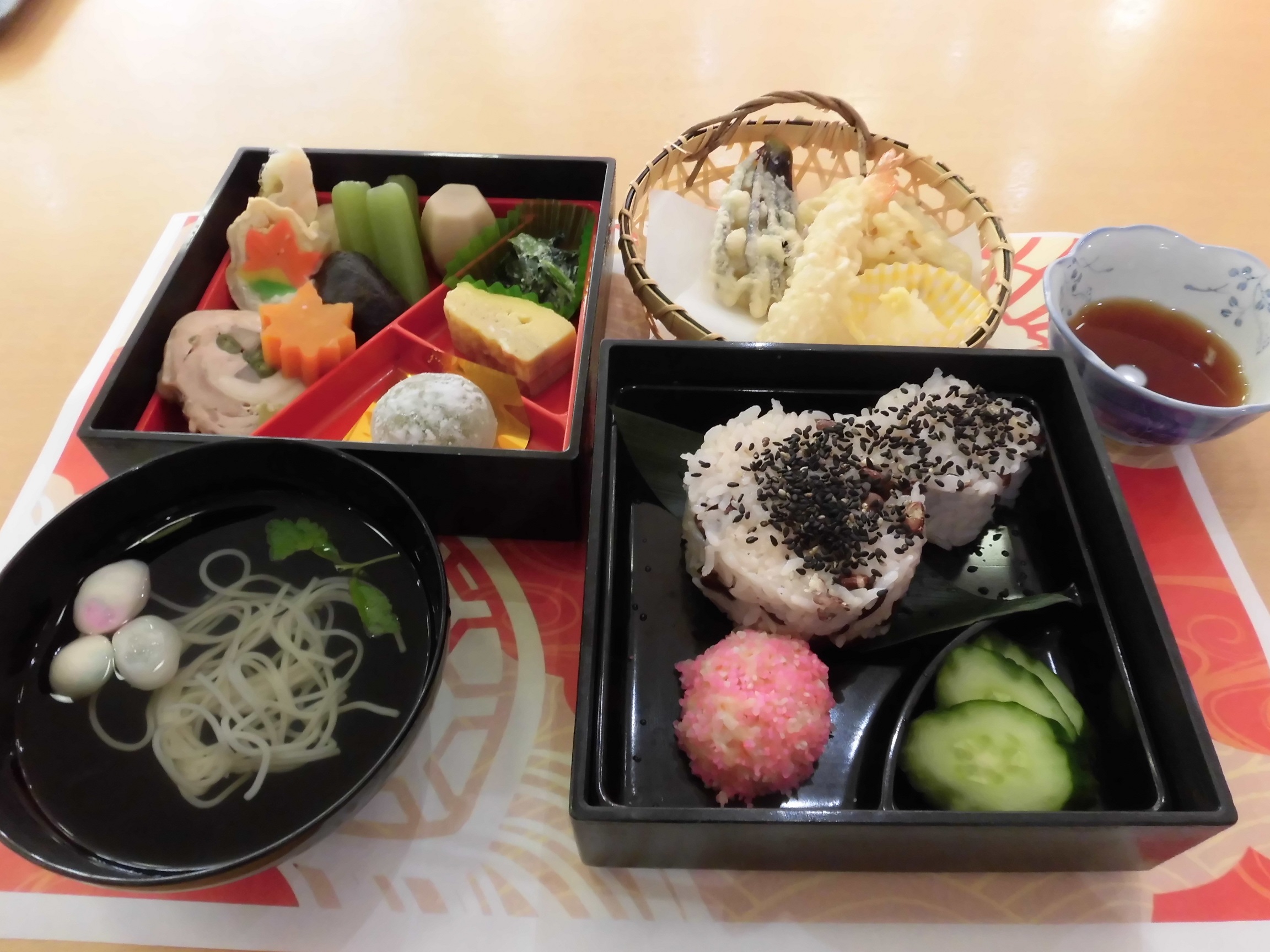 昼食は、豪華な押し寿司や天ぷらを召し上がって頂き、皆様「おいしい」と笑顔でおっしゃってました♪
