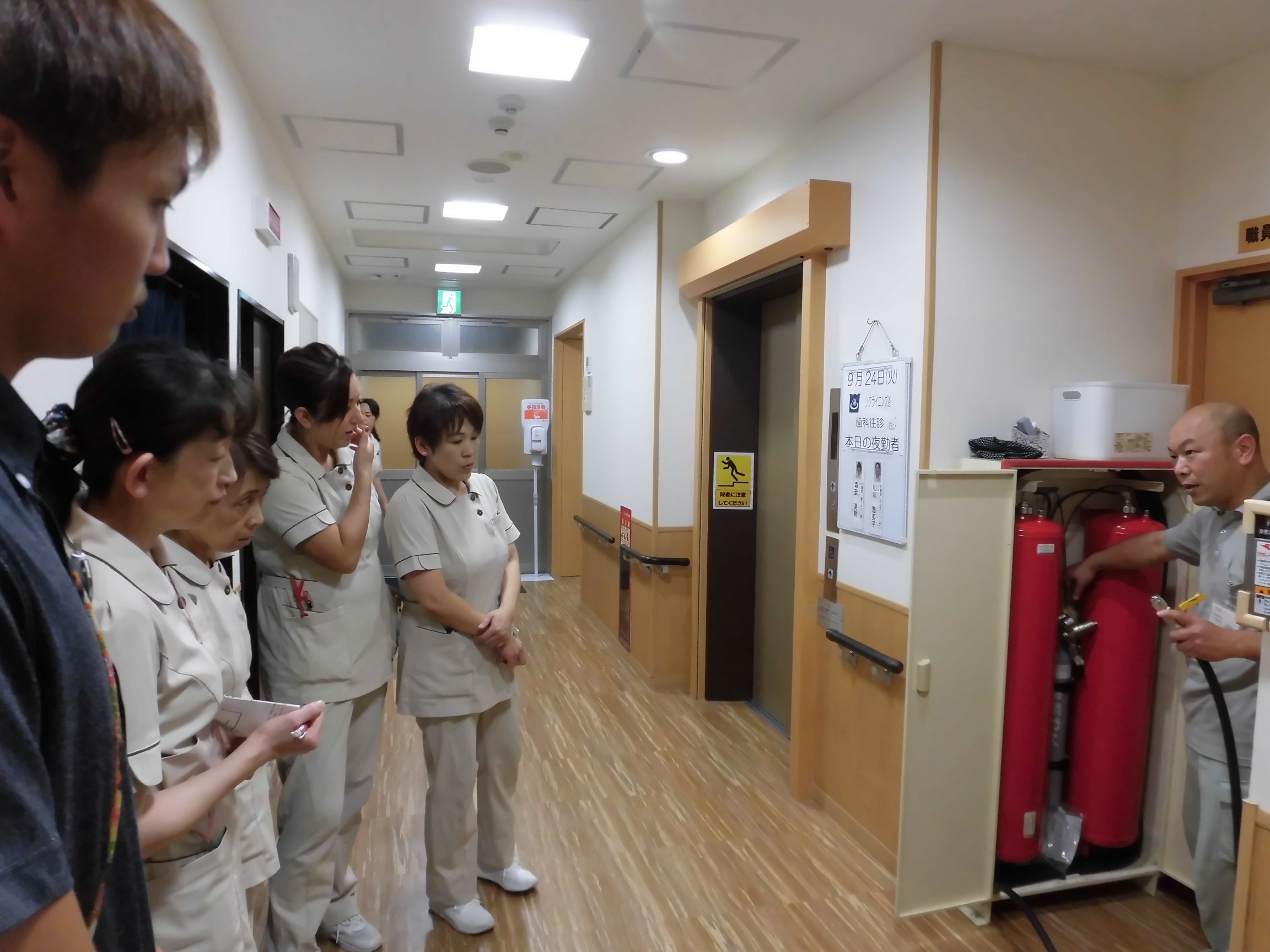 非常災害時、職員が落ち着いて行動できるように消防訓練を行いました。
