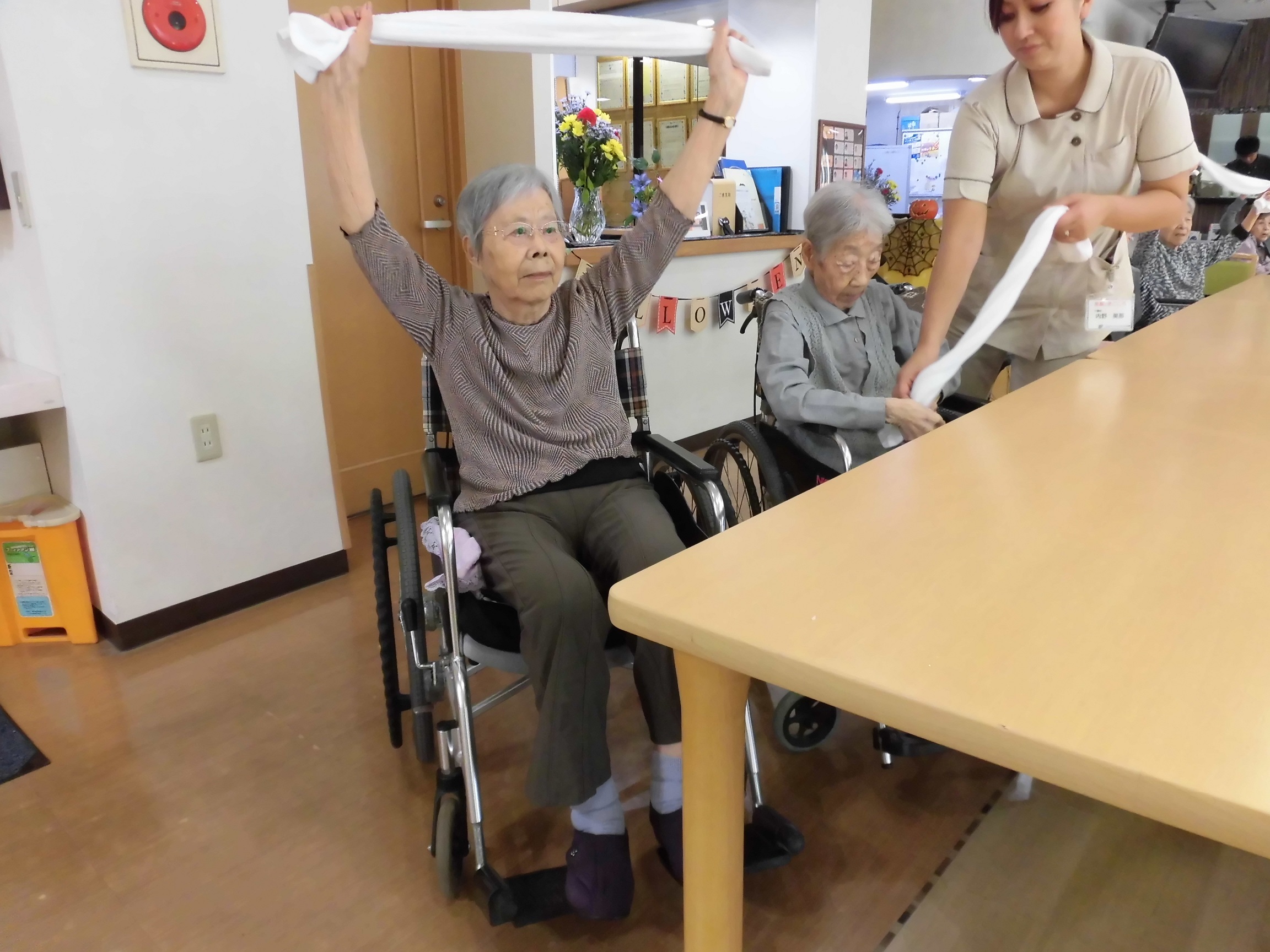 いつもの、「タオル体操」と「はちバス体操」を行いました。