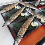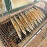 テラスにてさんまを焼き、香ばしい香りが1階ホールに包み込み、