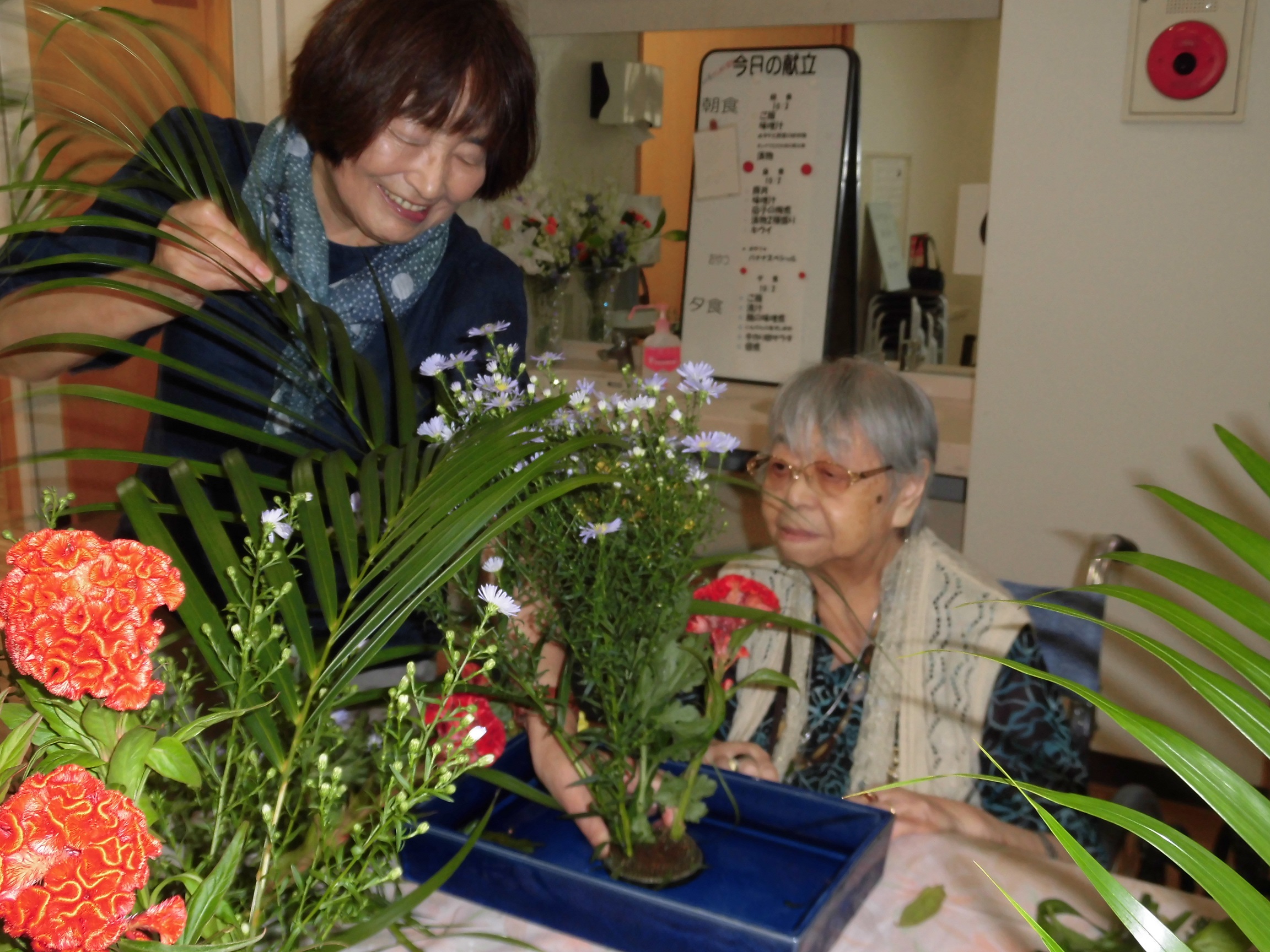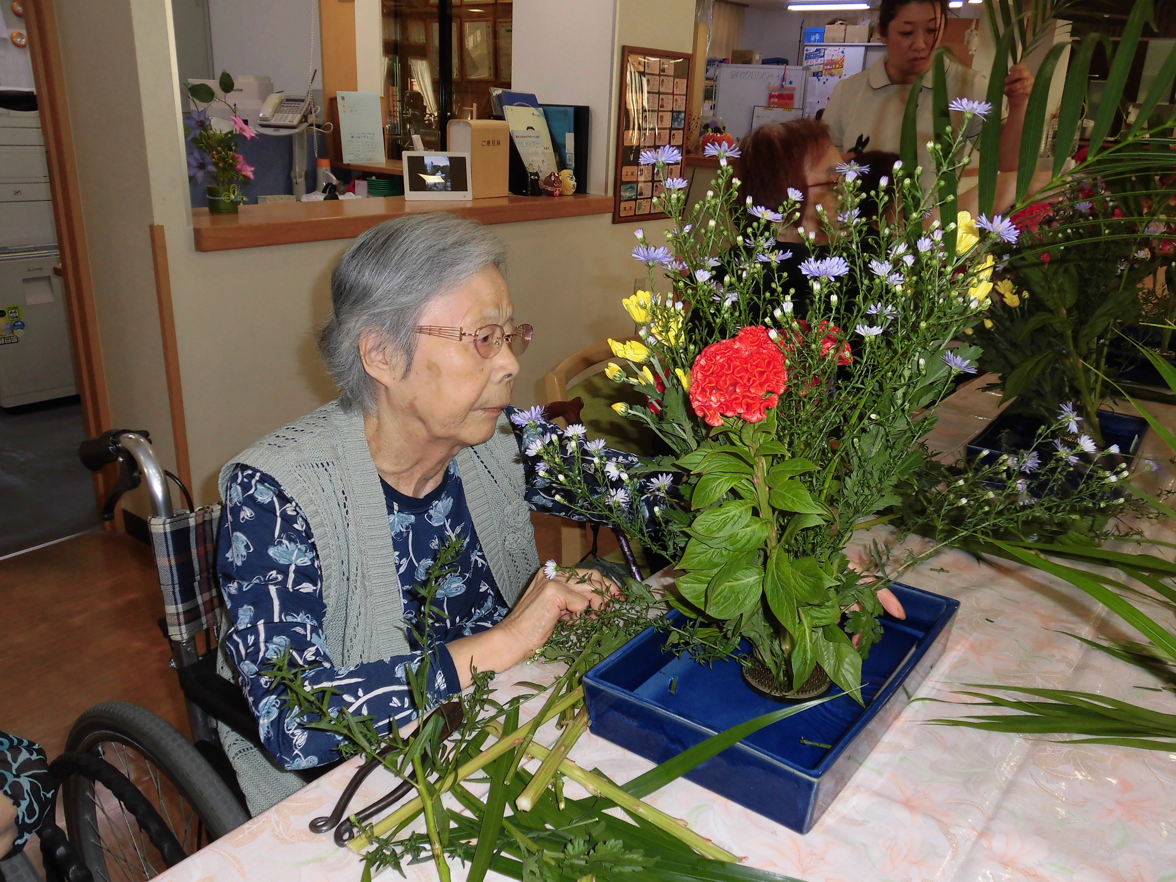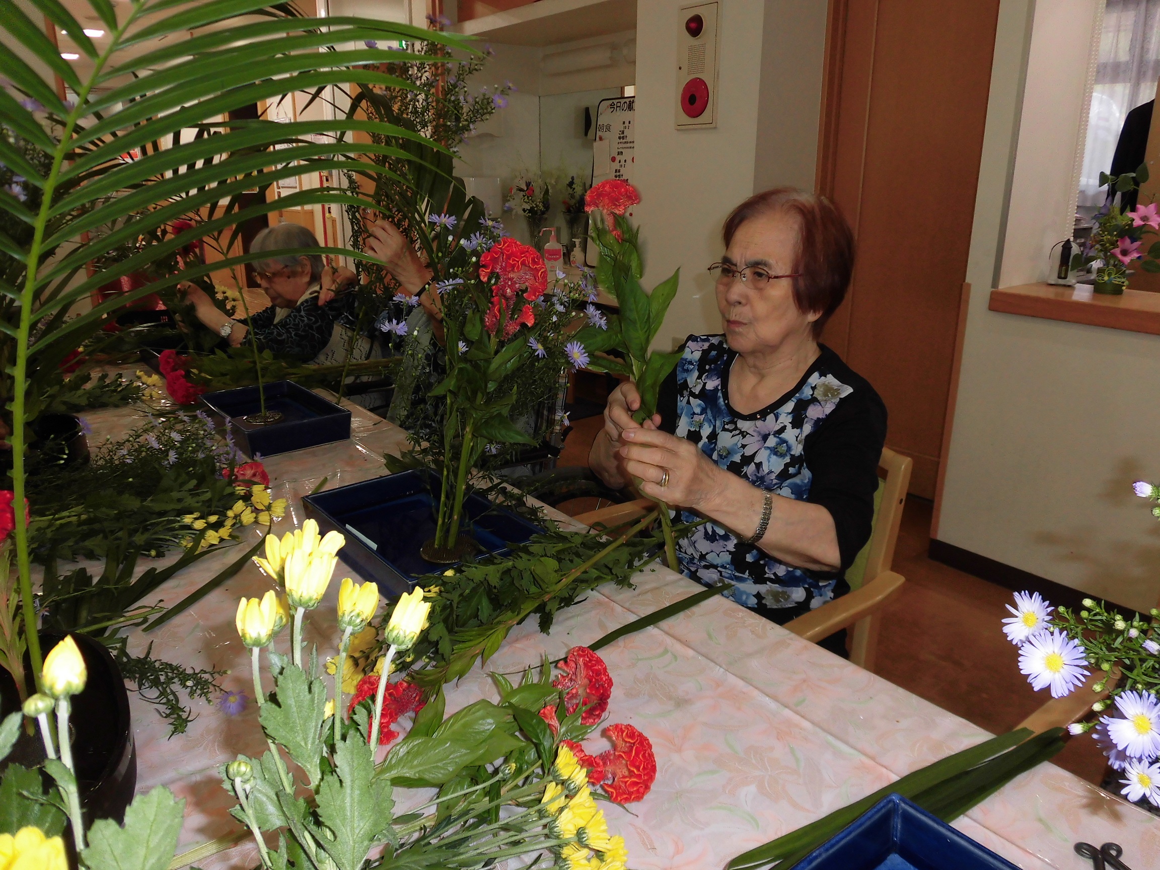 皆様、真剣な眼差しで生け花をされていました。