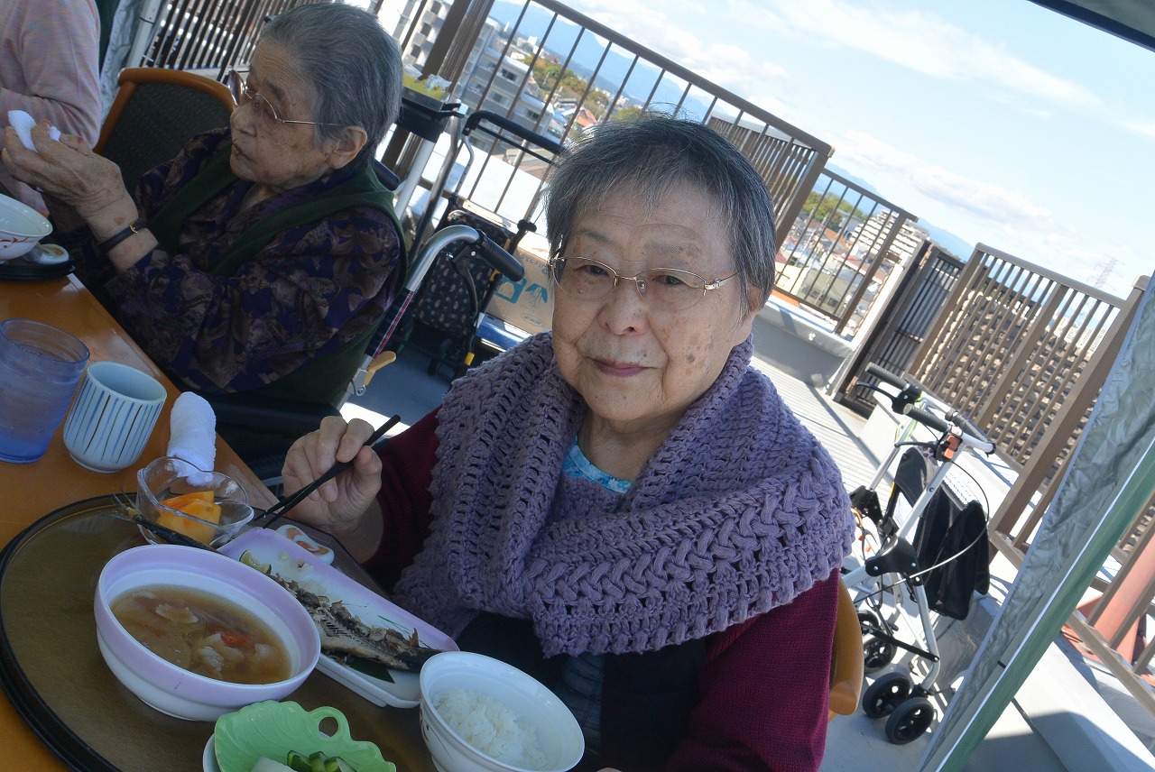 今年は施設初の試み、屋上でテントを設営して開放的に行いました♪
