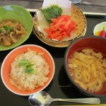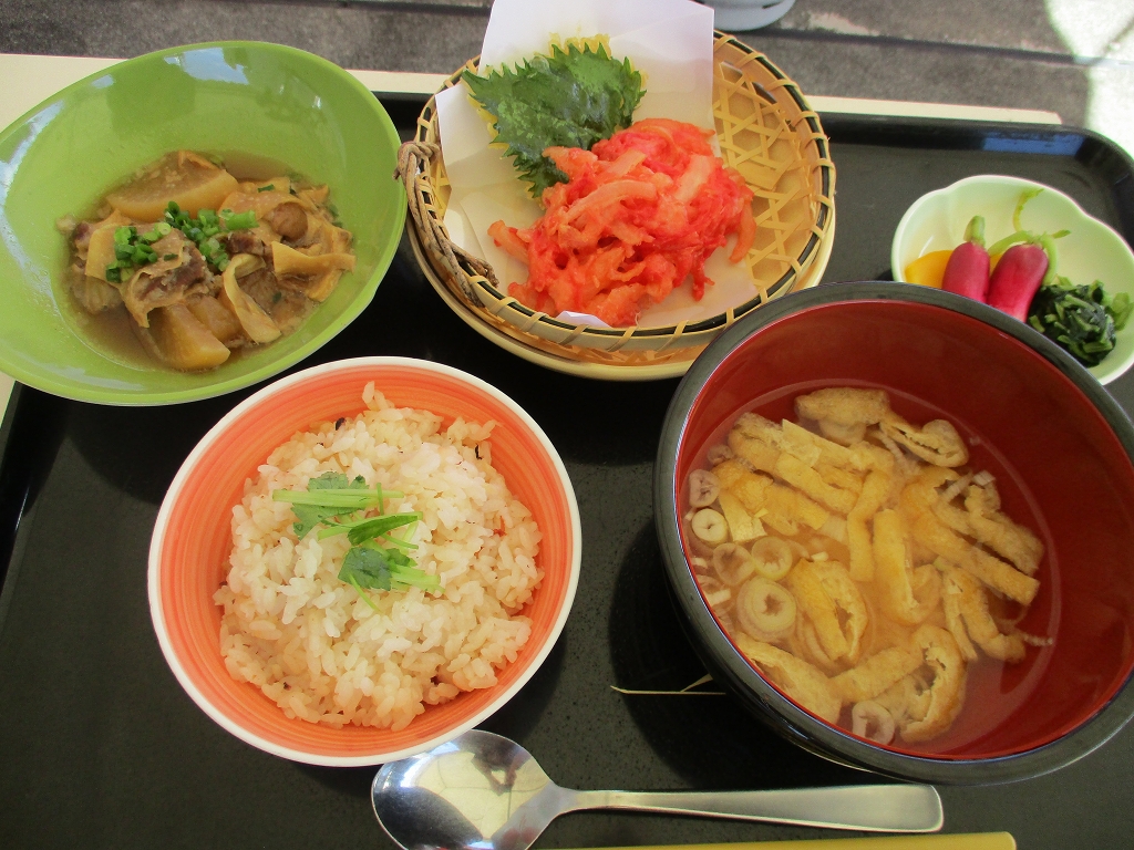 たこ飯(兵庫)、牛すじ煮込み(兵庫)、紅しょうがの天ぷら(大阪)、京都の漬物、うち豆汁(滋賀)を皆様に召しがって頂きました。