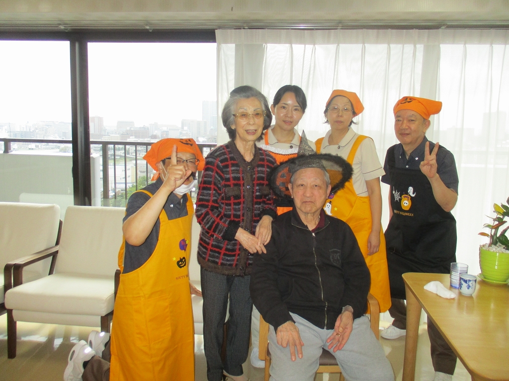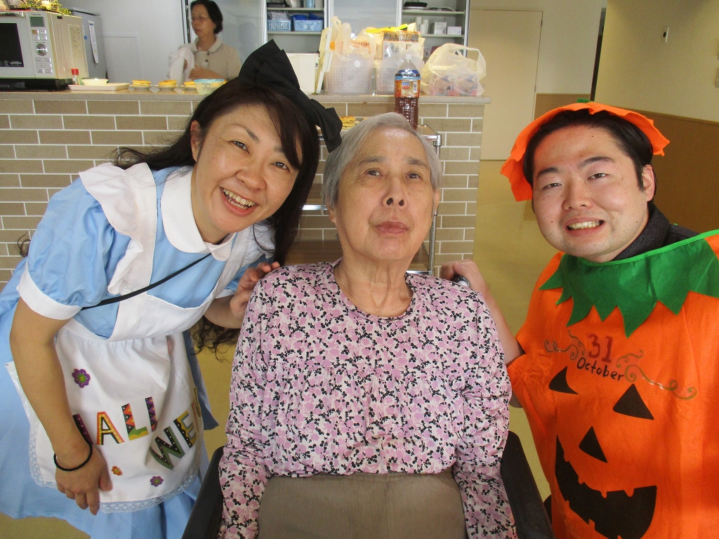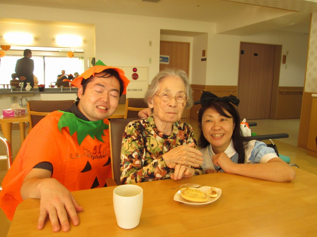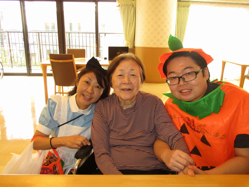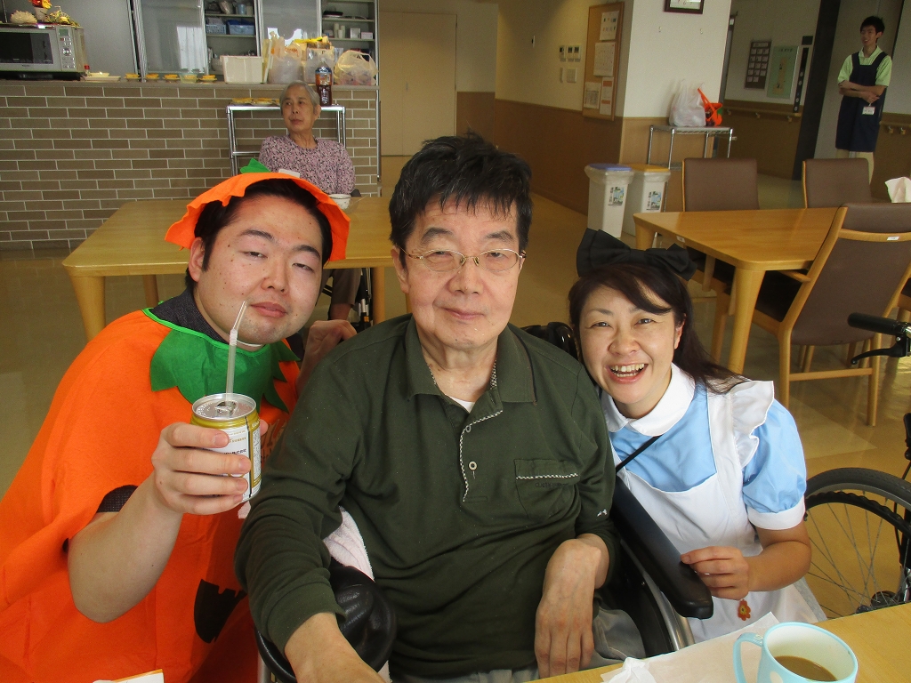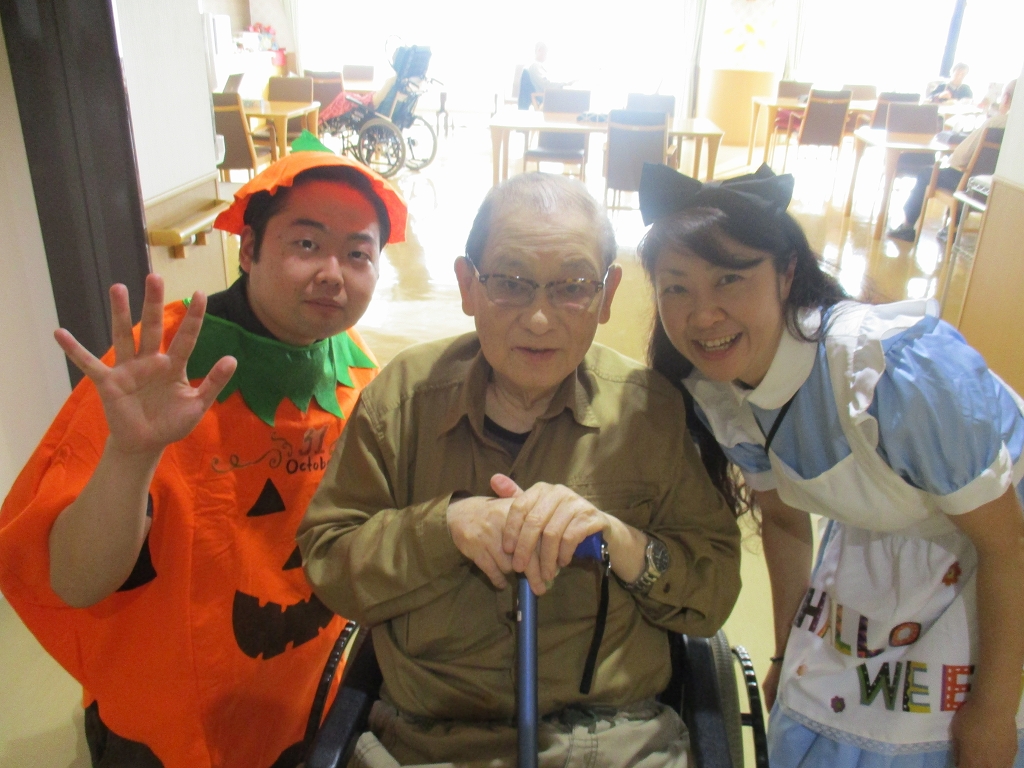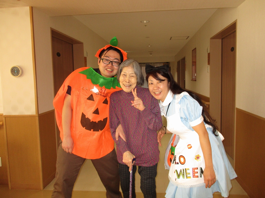 職員が、仮装をしておやつの時間に各フロアーを周らせて頂きました。