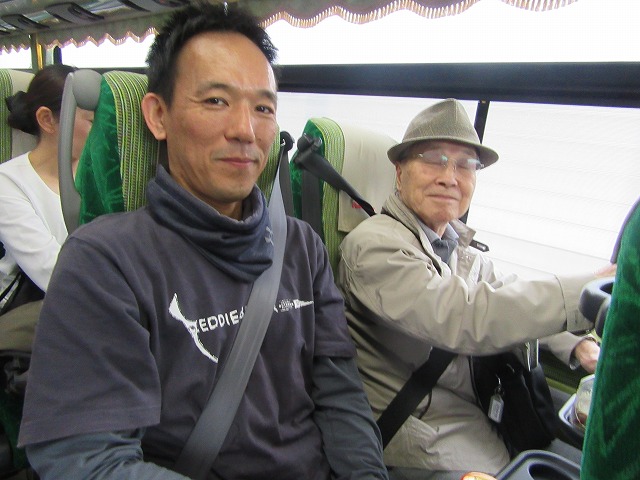 あいにくの雨となりましたが、バスの中では関係ありません。