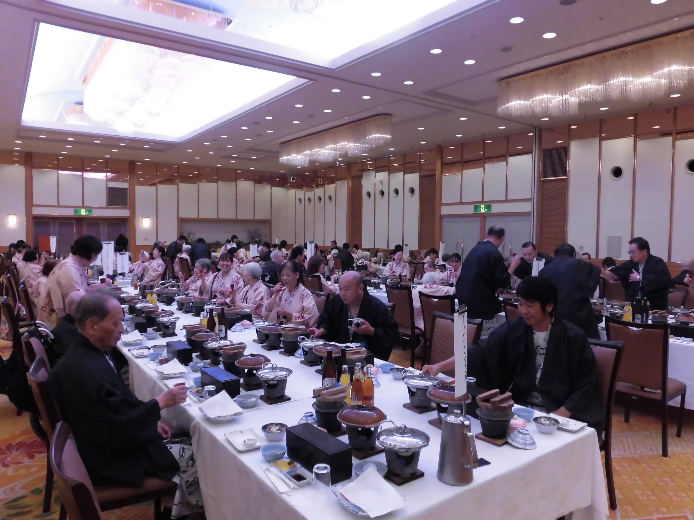 夕食時は宴会を開催し、豪華な美味しい和食膳にお酒を飲み、途中でカラオケを行い大いに盛り上がり楽しんで頂きました。