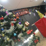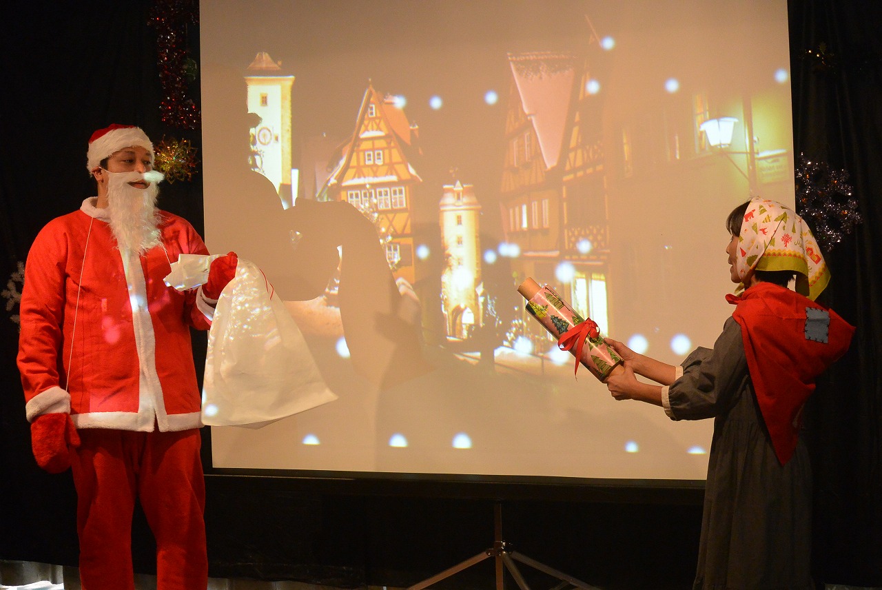 ツリーや雪だるまに扮した職員も登場し、劇の最後には演者勢ぞろいのダンスで会場を盛り上げました。