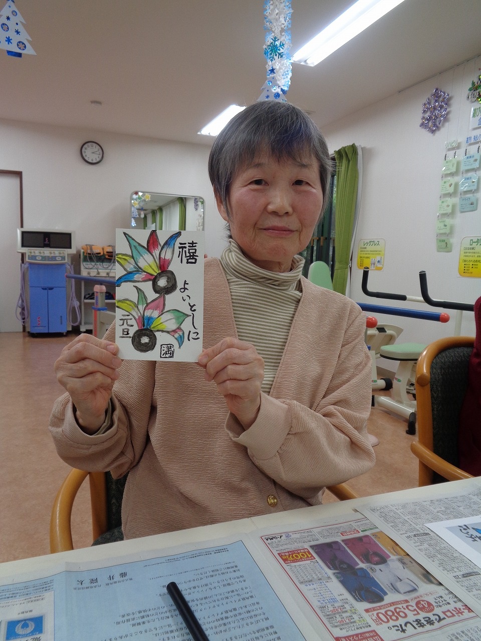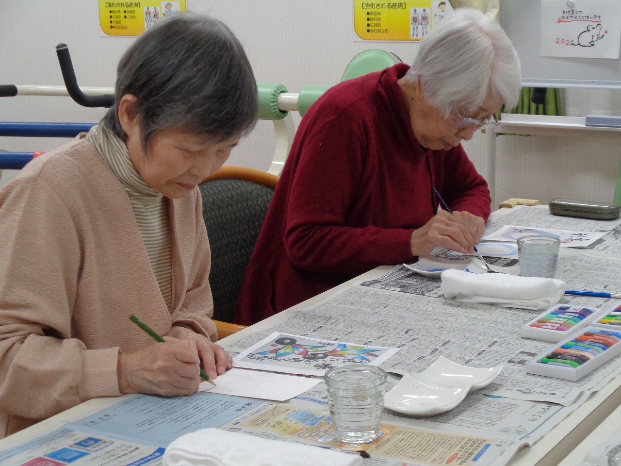 絵手紙を描きながら年賀状のお話や干支のお話をされ、