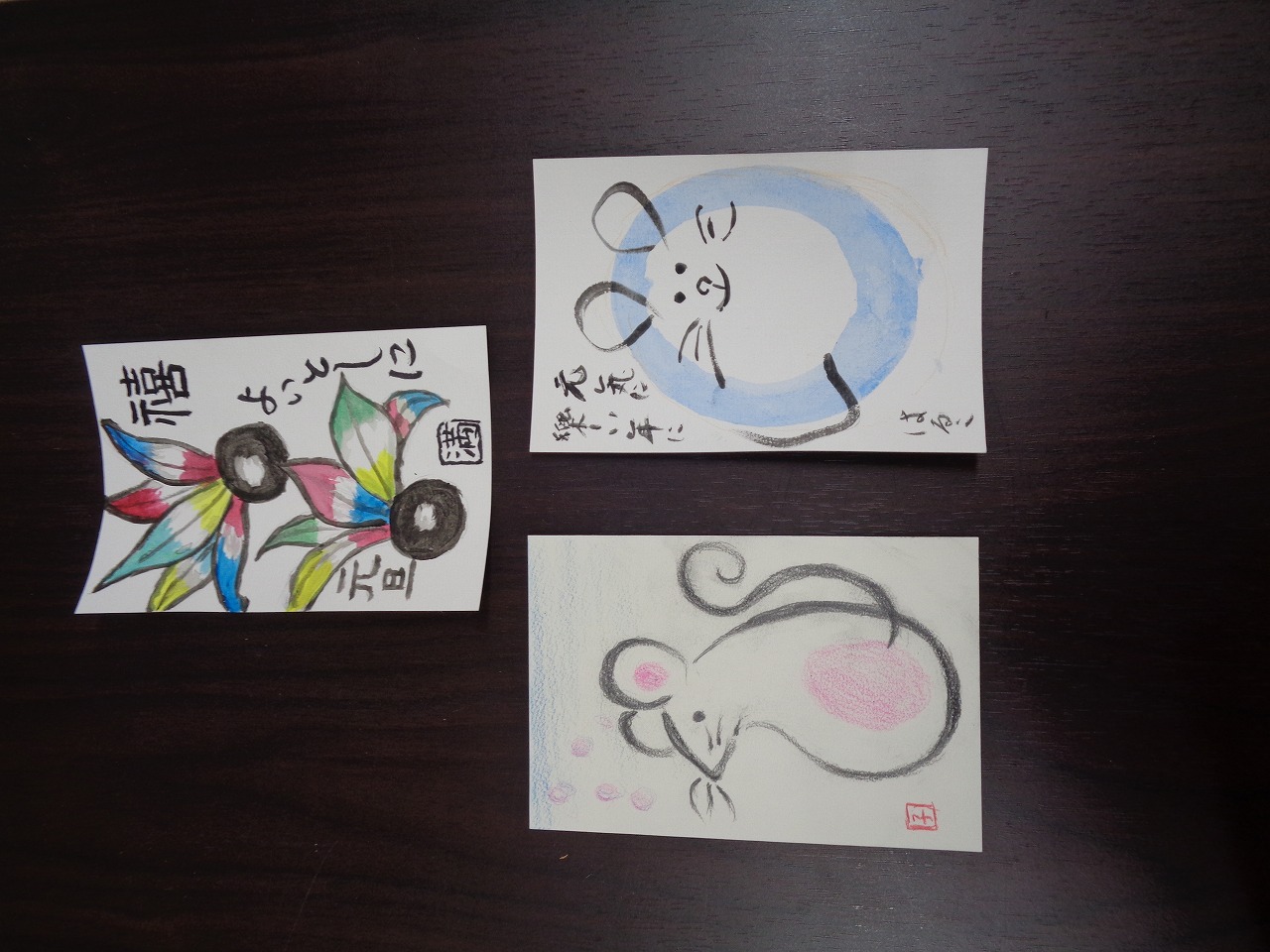 来年の干支のねずみを描かれる方や、羽子板の羽を描かれる方もいらっしゃいました。