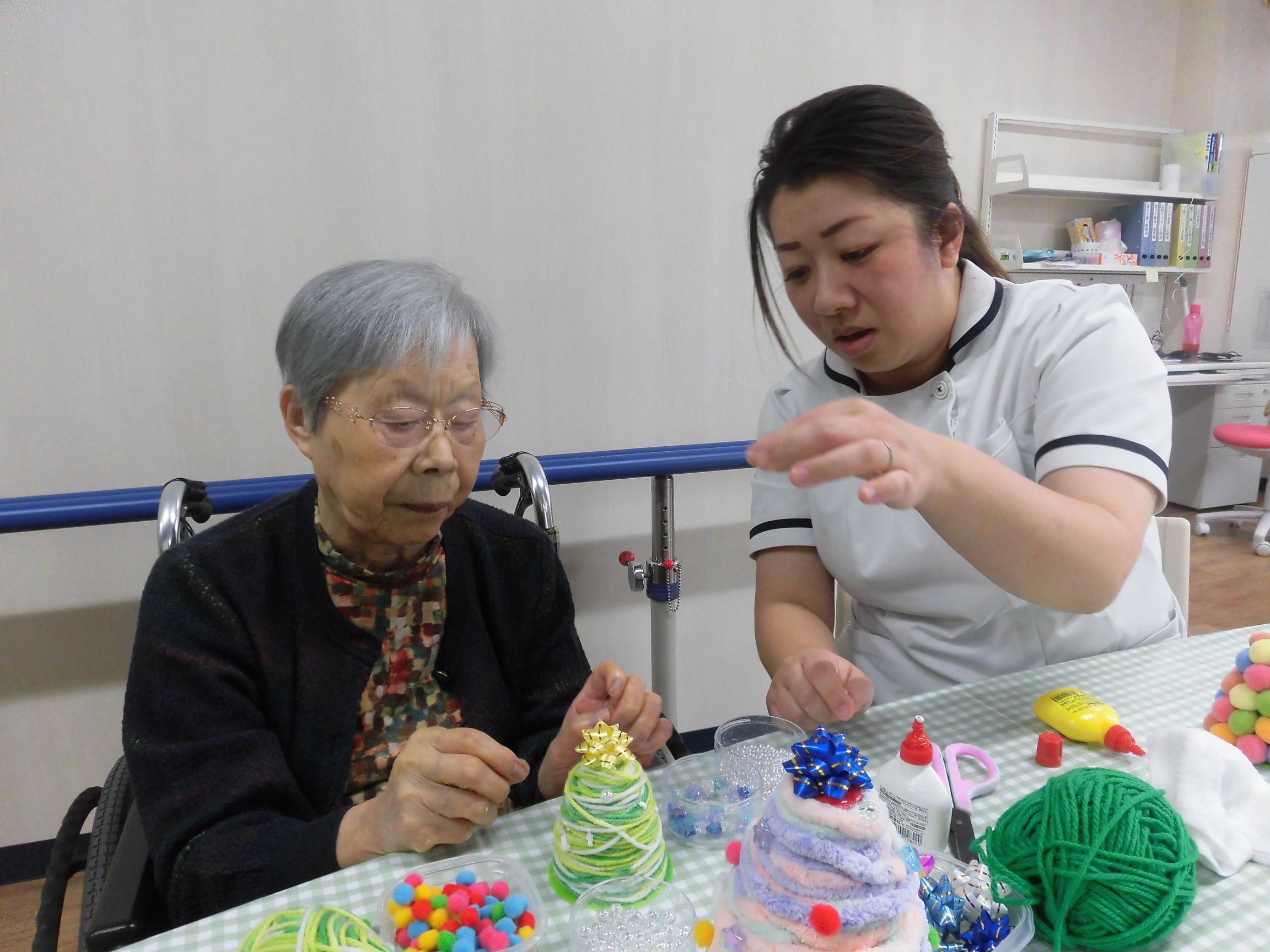 ビーズやボンボンをお好きな所へ飾って頂きました。
