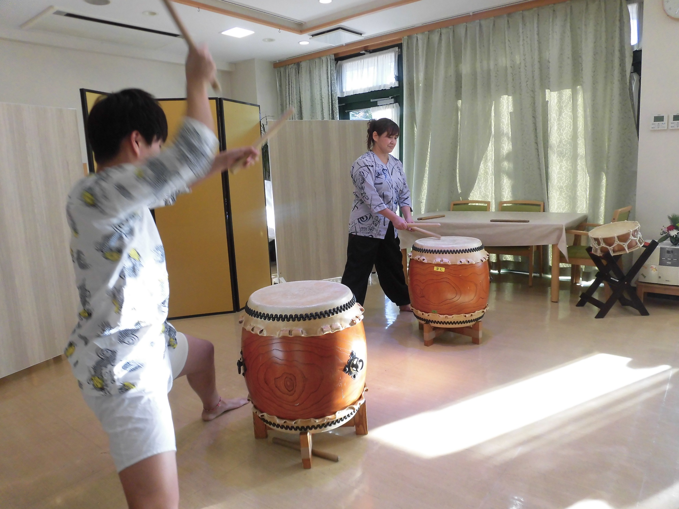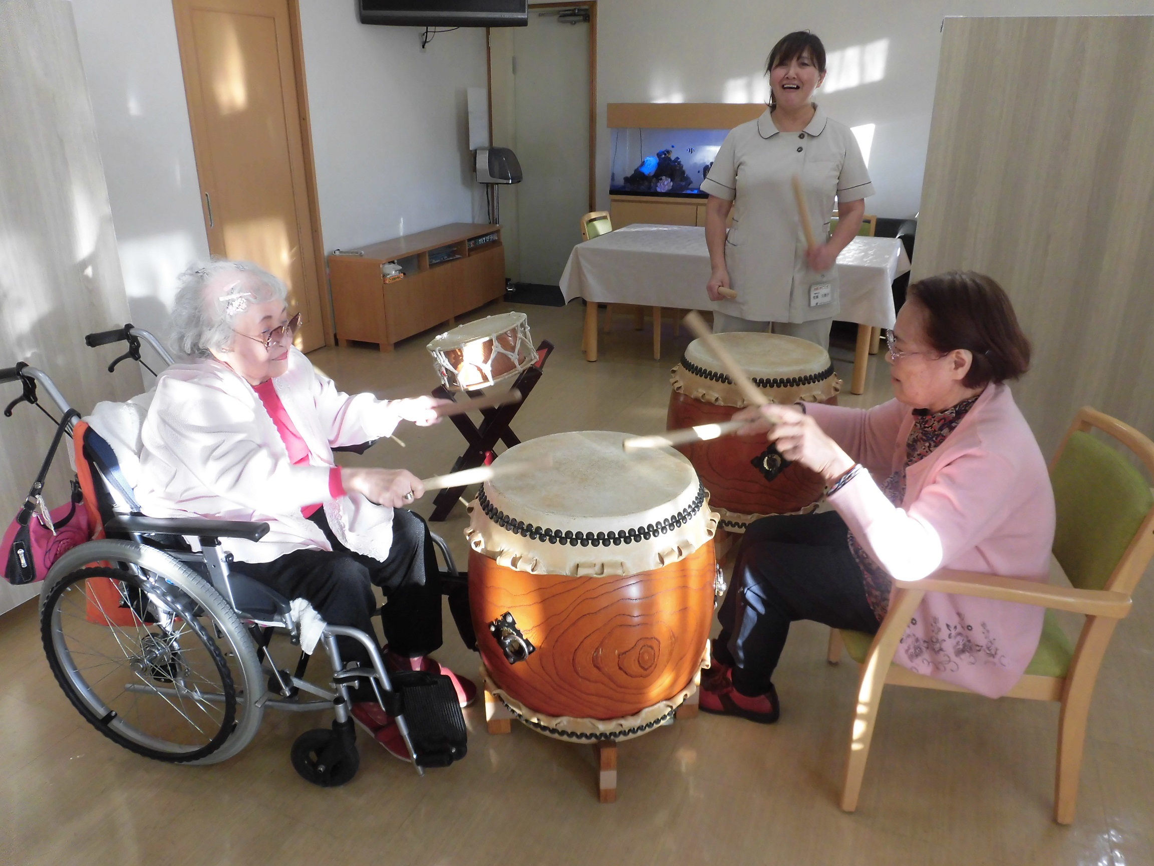 清々しい晴天のもと、午後の憩いの時間に、力強い太鼓の音がホールに鳴り響きました。