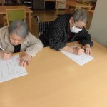 「鉛筆なんて久しぶりに持ったわ」「たまには頭使わないとね」笑顔で取り組んでいました。