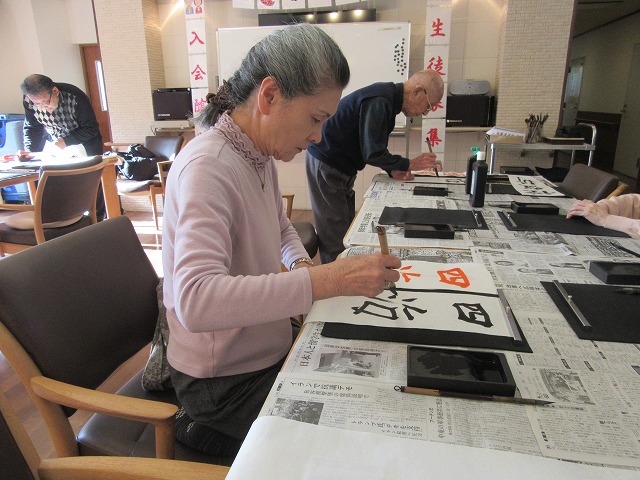 皆様、一心不乱に筆に集中して、書をたしなんでいらっしゃいました。