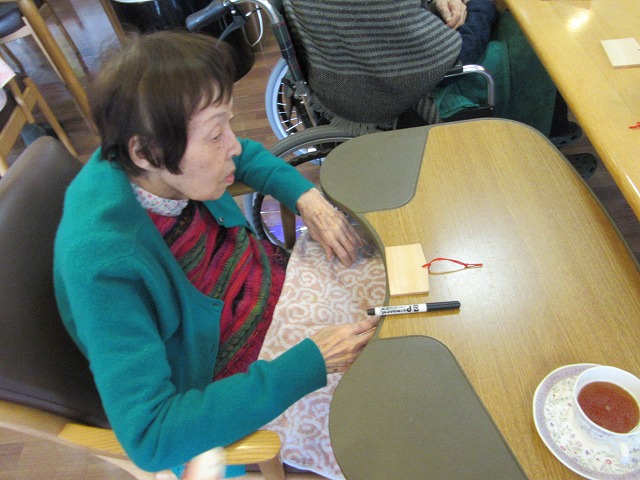 ご入居者の皆様と一緒に「絵馬」を作りました。