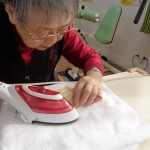 返し口をあけて縫います。縫い代を折ってアイロンをかけます。そうすることで出来上がりが綺麗になります。