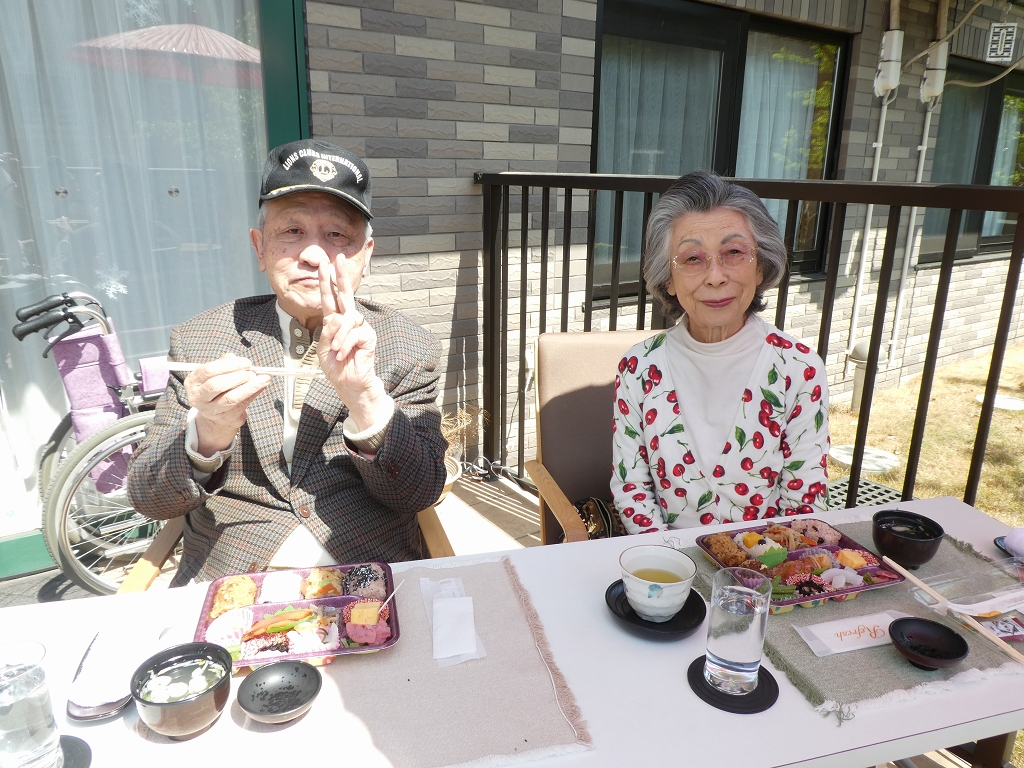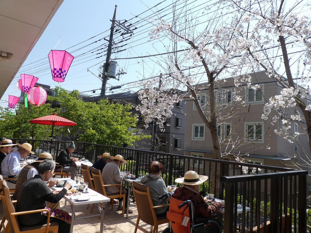 お花見をしながら1Fのテラスにて