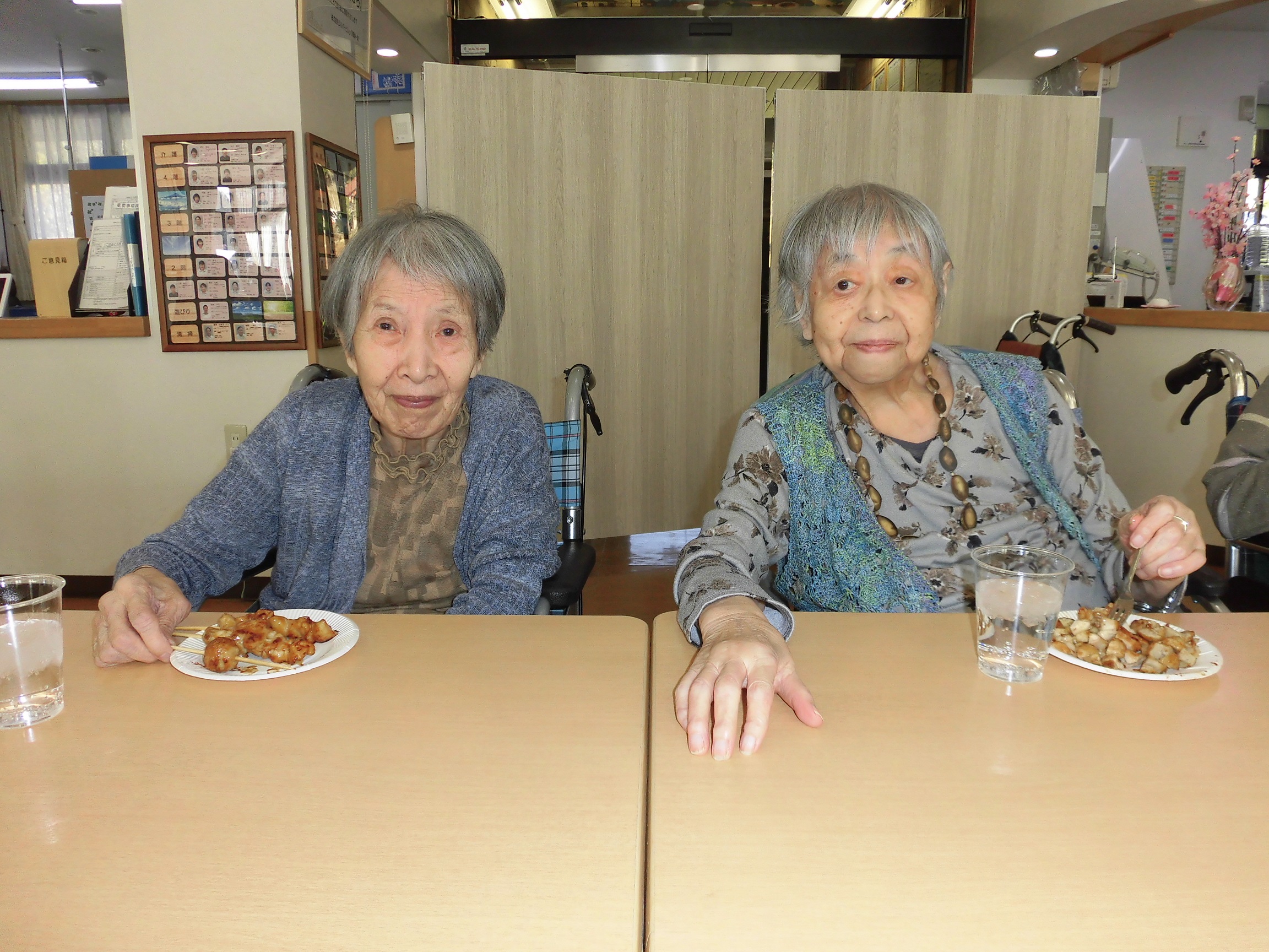 少し戸惑っている様子の中、午後のテラスでおやつに熱々の