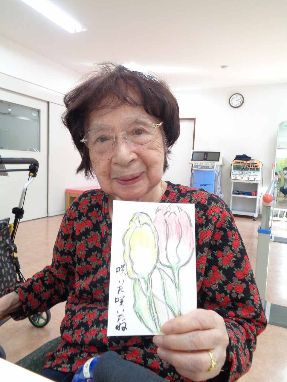本日は春をテーマに、チューリップや菜の花、うぐいす等を描いていただきました。