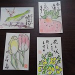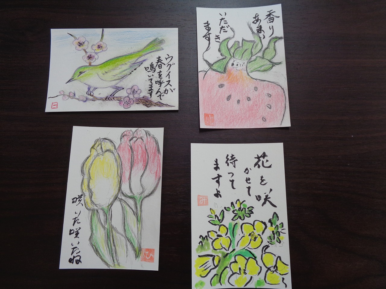 絵の具や顔彩の鮮やかな感じも素敵ですが、色鉛筆の柔らかな色も春らしく感じました♪