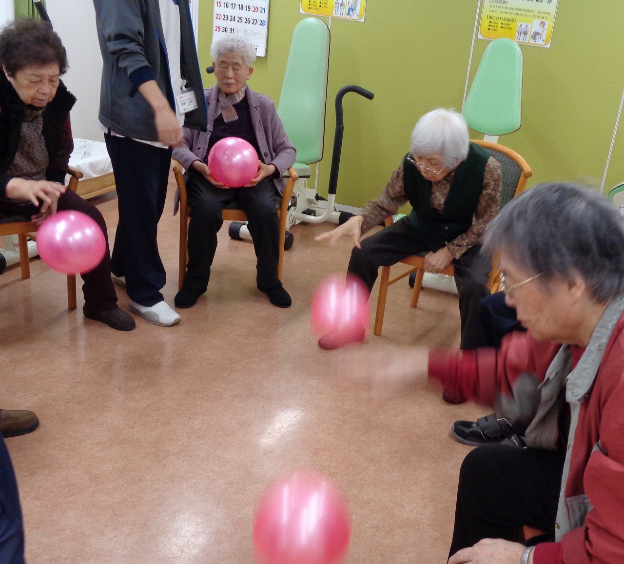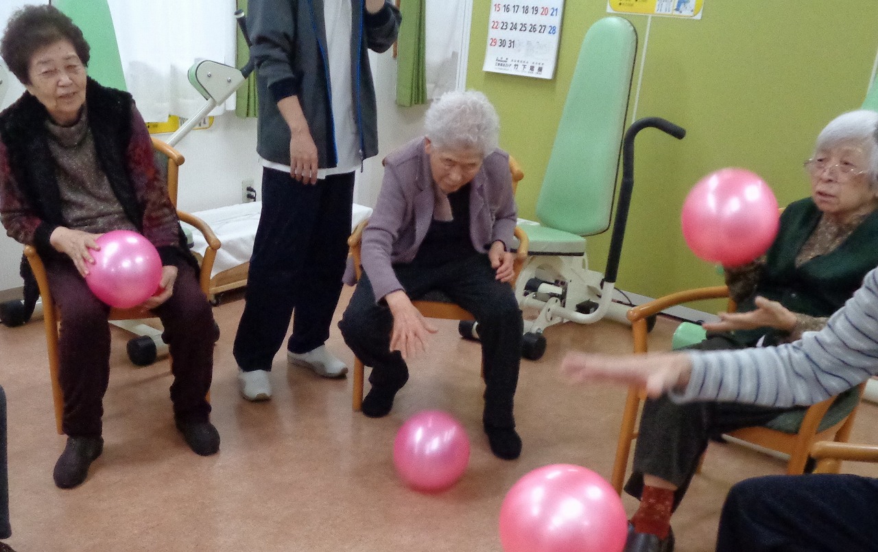 リハビリ室にてボール運動を行いました。