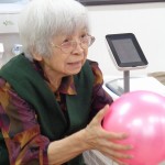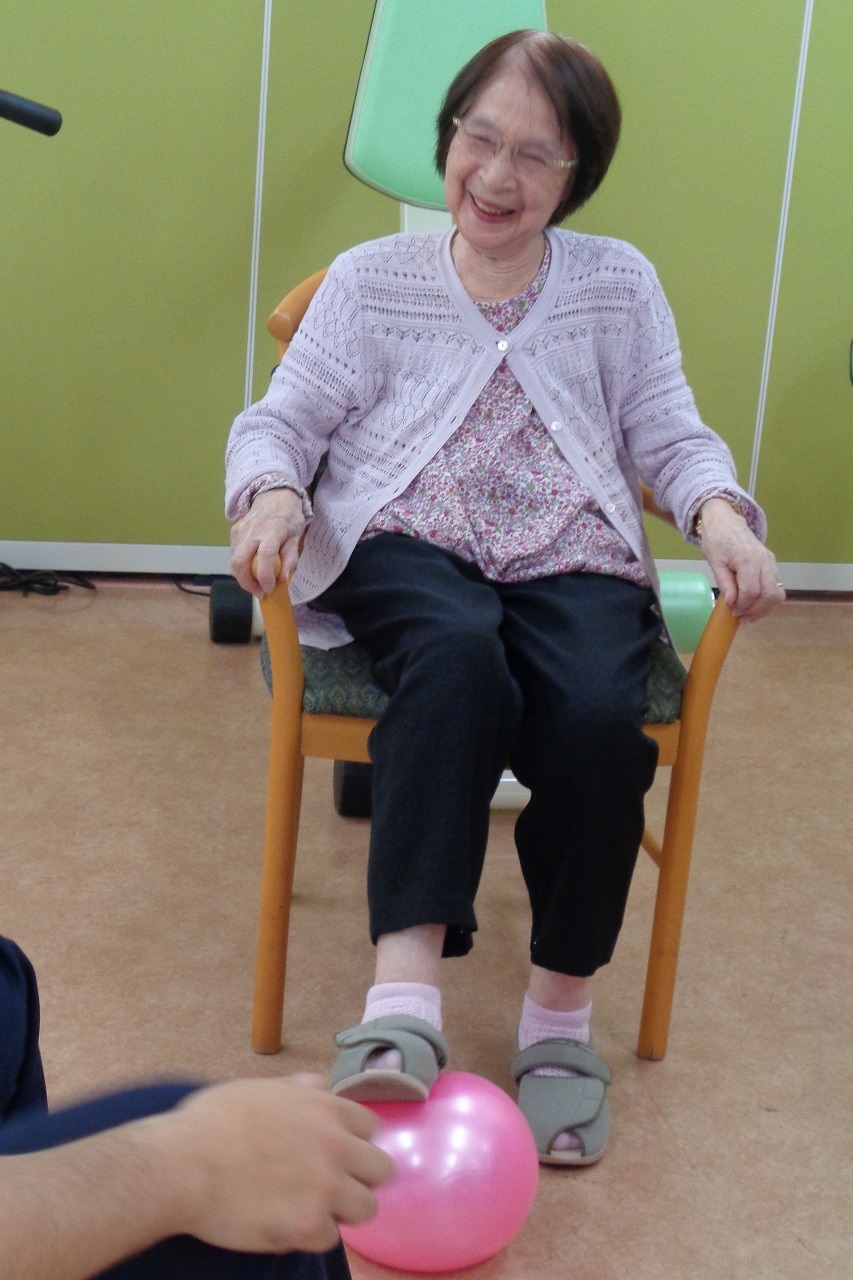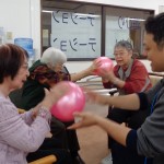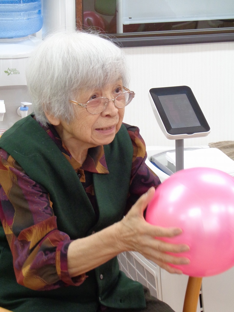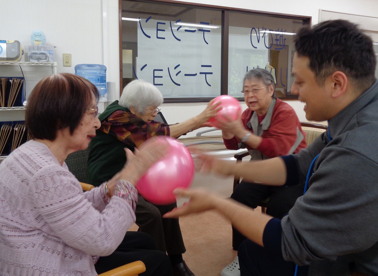 歌に合わせて2つのボールを時計回りに渡す運動をする際、