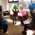 まず、ボールで上半身と下半身をしっかりと動かして頂きました。