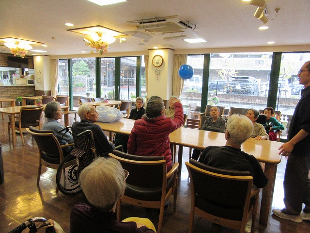 まとめての風船バレーです。大きい為に、皆様、手でアタックしやすい
