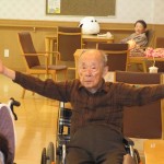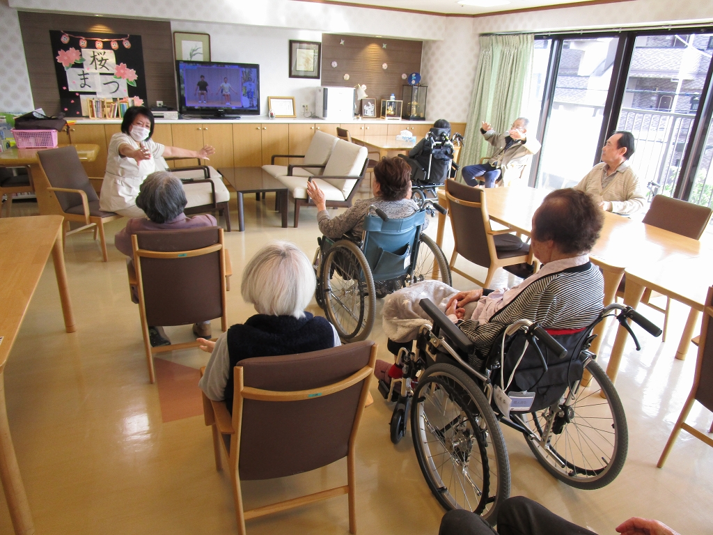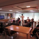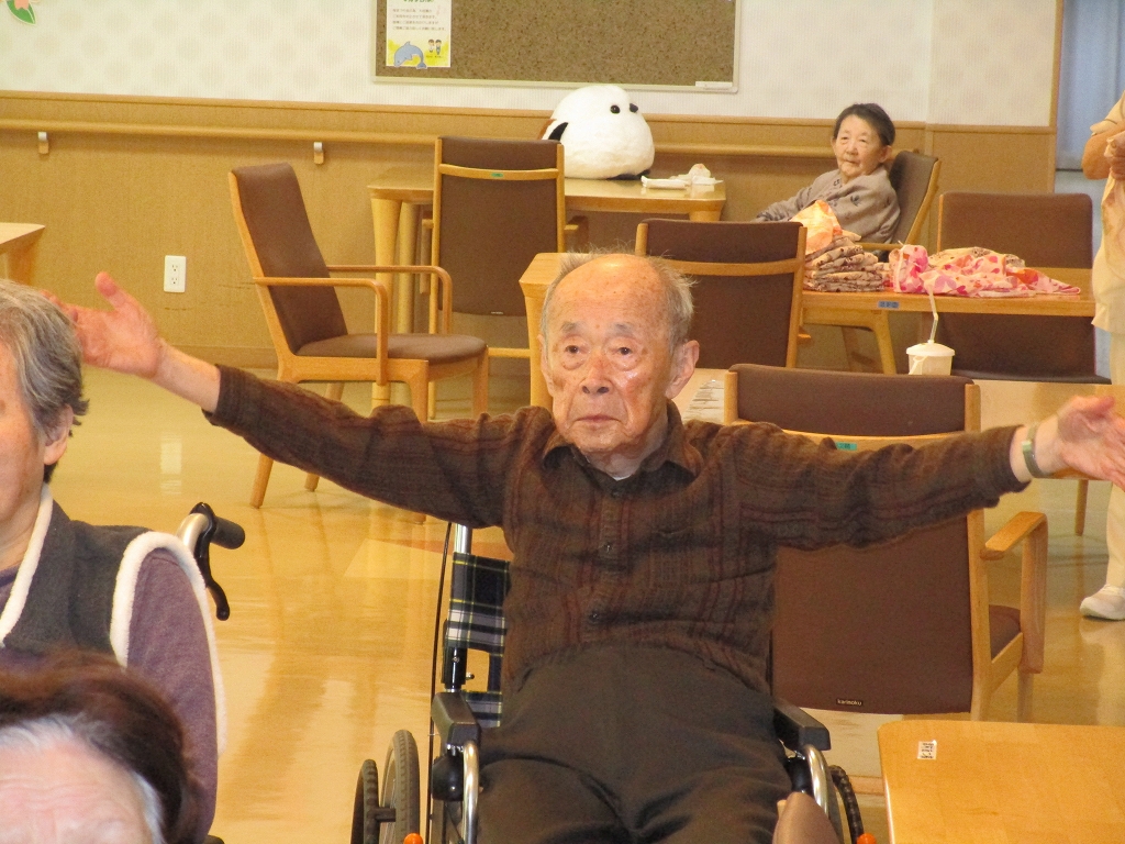 声を出しながら、手足を上げ下げ体操を行います。
