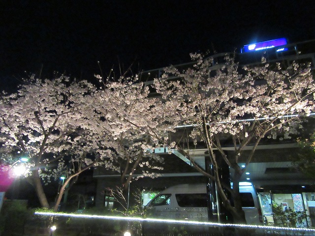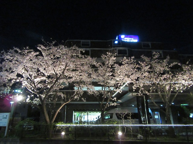 桜のライトアップがとても綺麗に映えています。