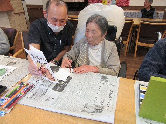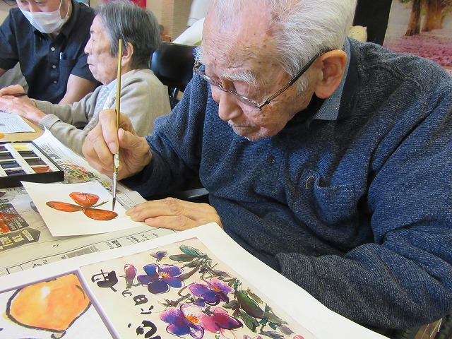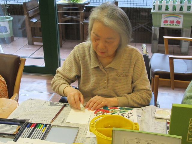 本日は、創作レクの一環である、絵手紙です。