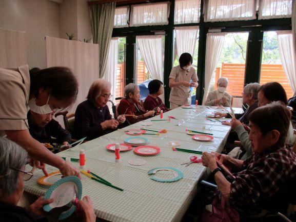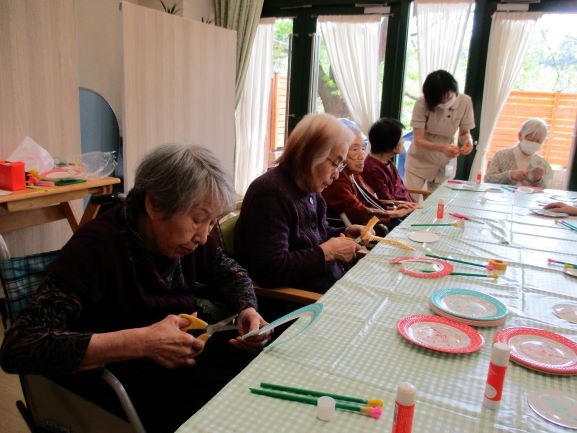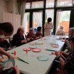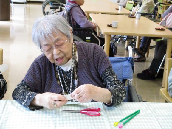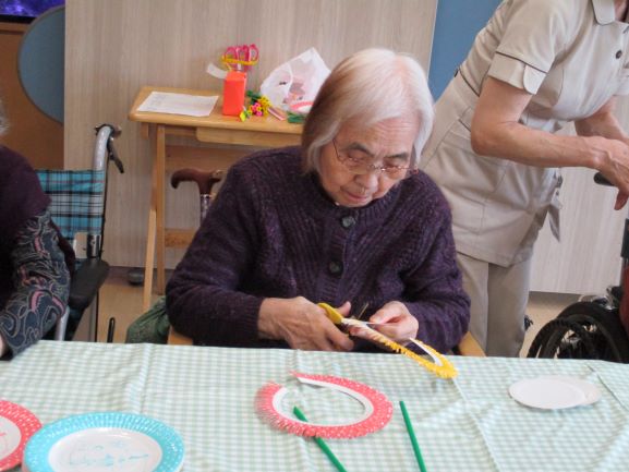 紙皿を切ってストローに巻き付けていくのですが、皆様、